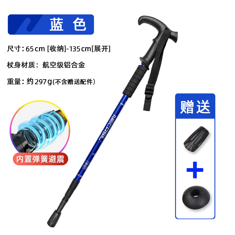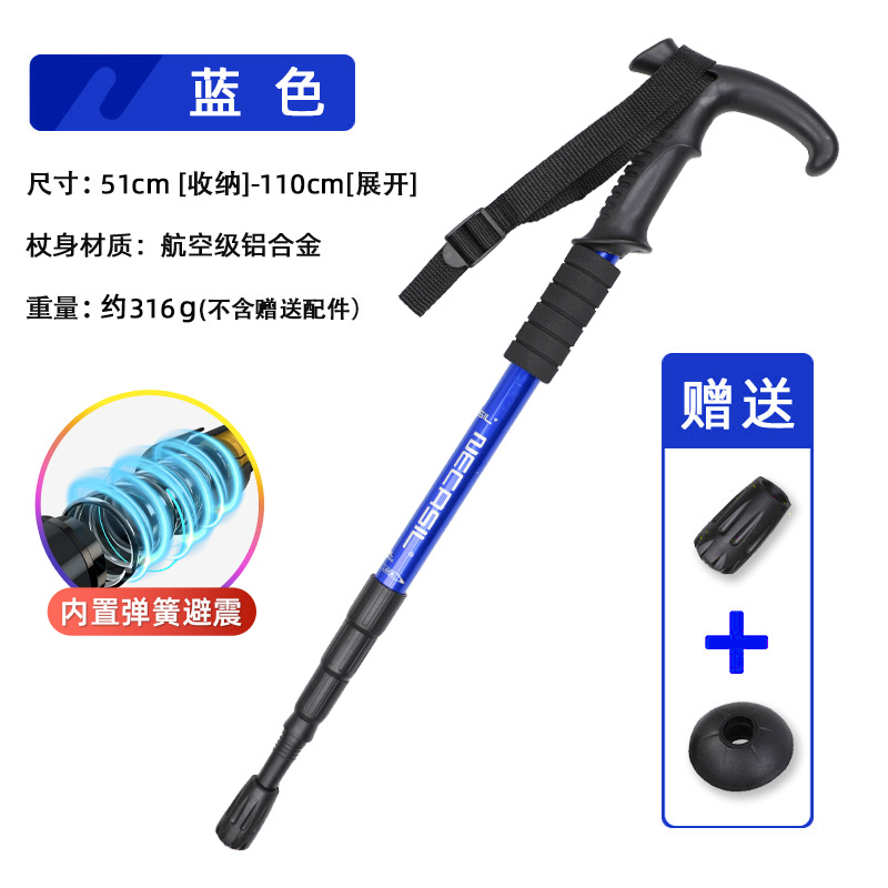 • 4개 섹션 텔레스코픽|곡선형 핸들 블루 50-110cm (충격 흡수 시스템 내장)