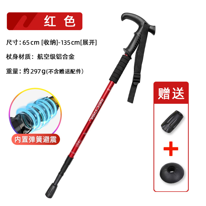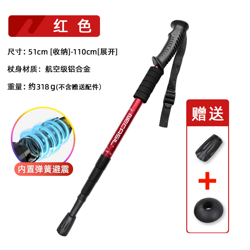• 4개 섹션 텔레스코픽|곡선형 핸들 레드 50-110cm (충격 흡수 시스템 내장)