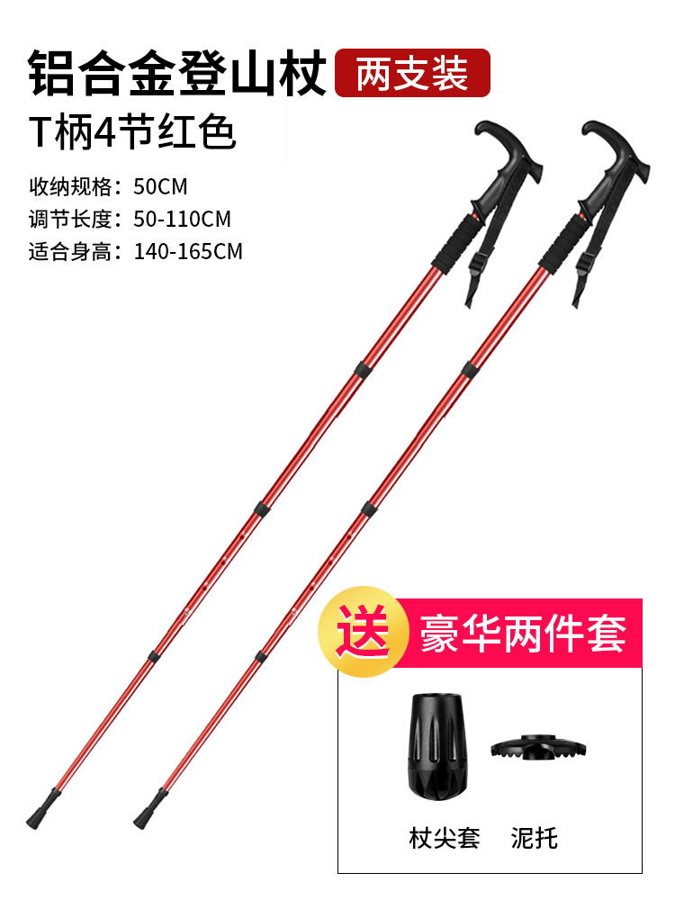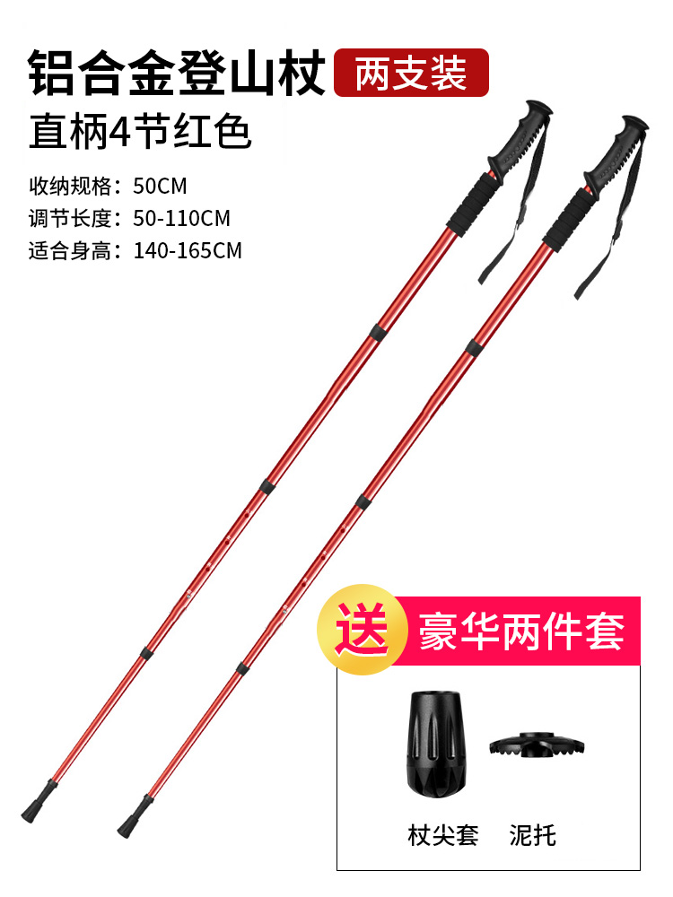 • 4개 섹션 텔레스코픽|스트레이트 핸들 레드 50-110cm (충격 흡수 시스템 내장)