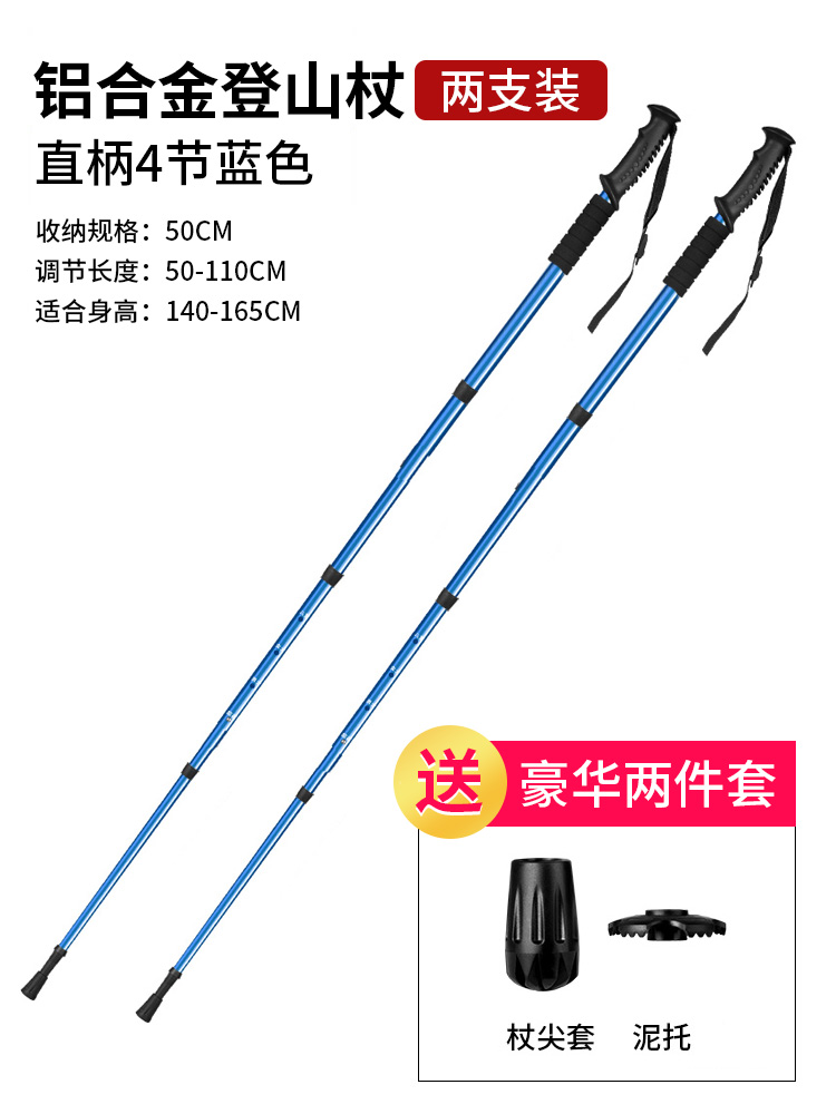 • 4개 섹션 텔레스코픽|직선 핸들 블루 50-110cm (충격 흡수 시스템 내장)