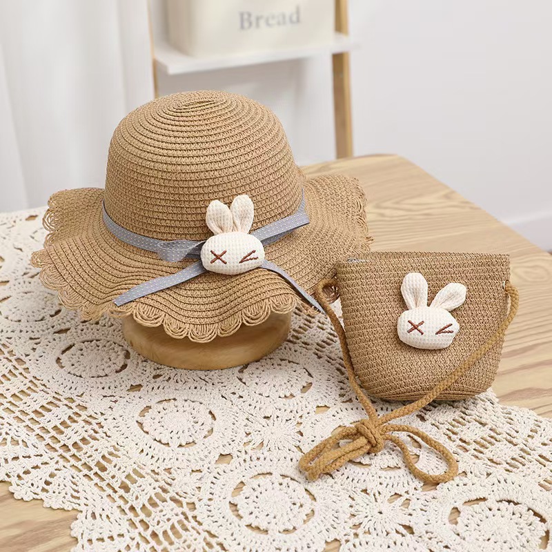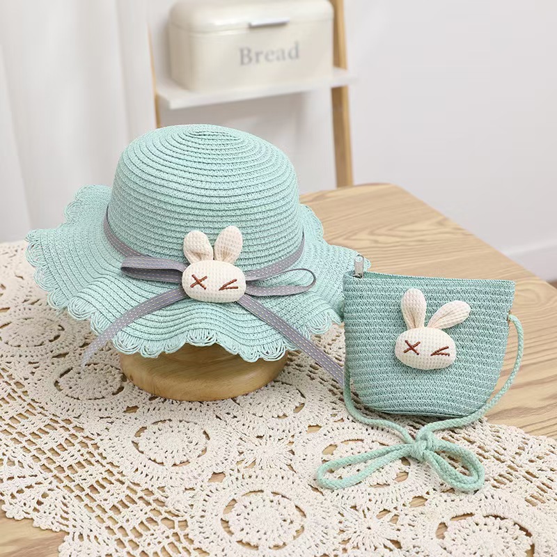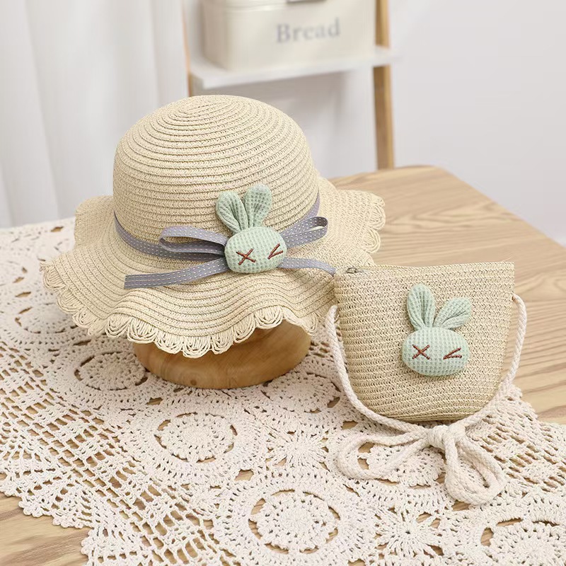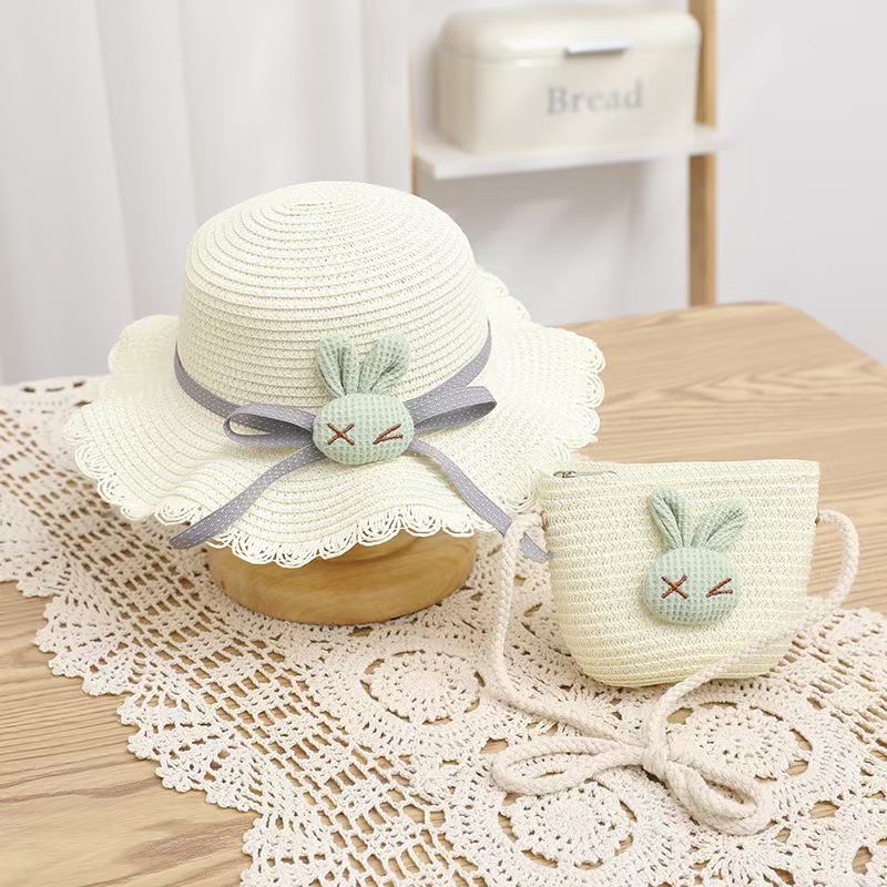 여성 여름 귀엽고 재미있는 다용도 공주 해변 모자 야외 태양 보호 소녀 밀짚 모자 태양 모자 + 가방 커버스토어 가기