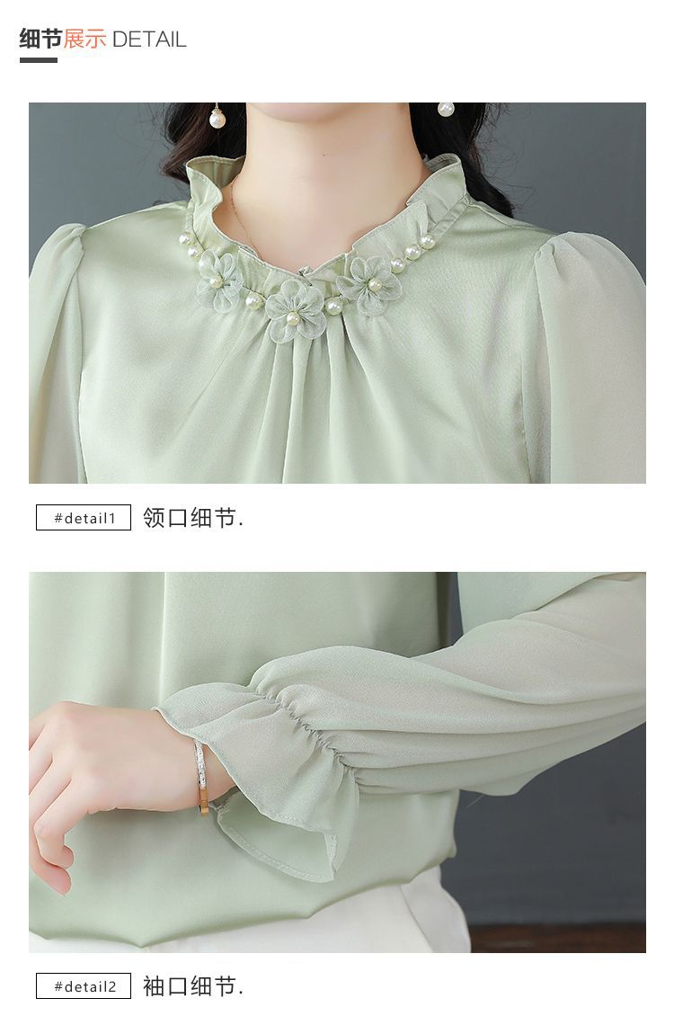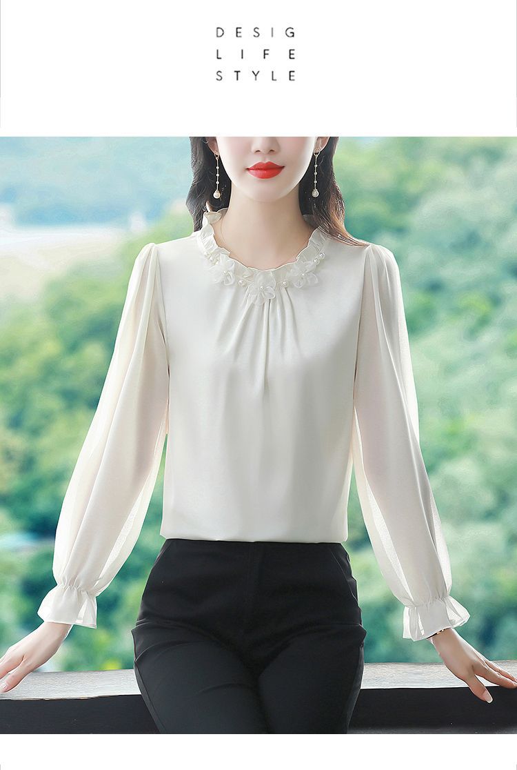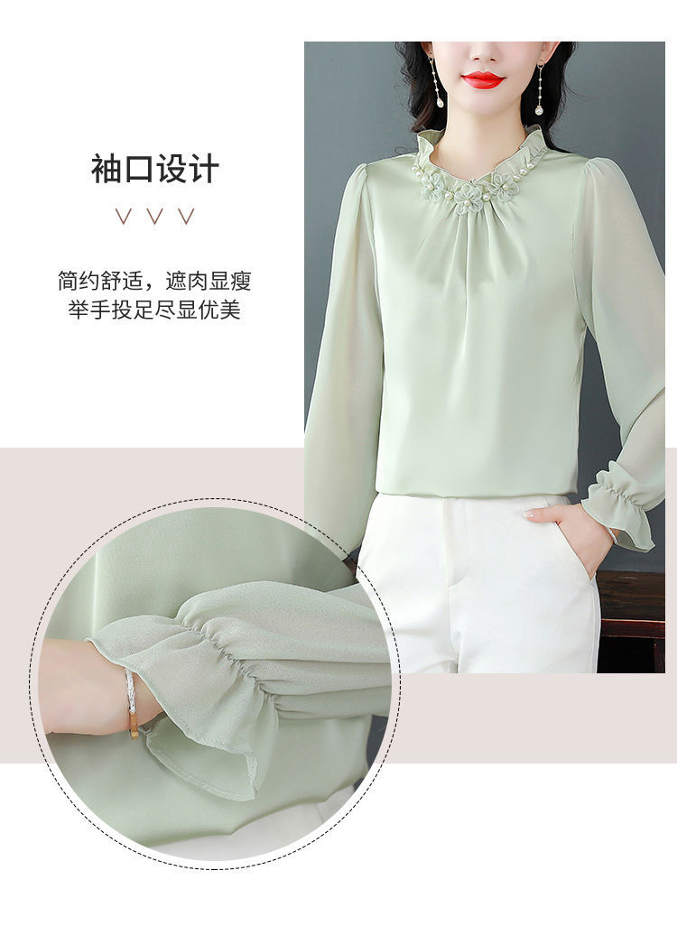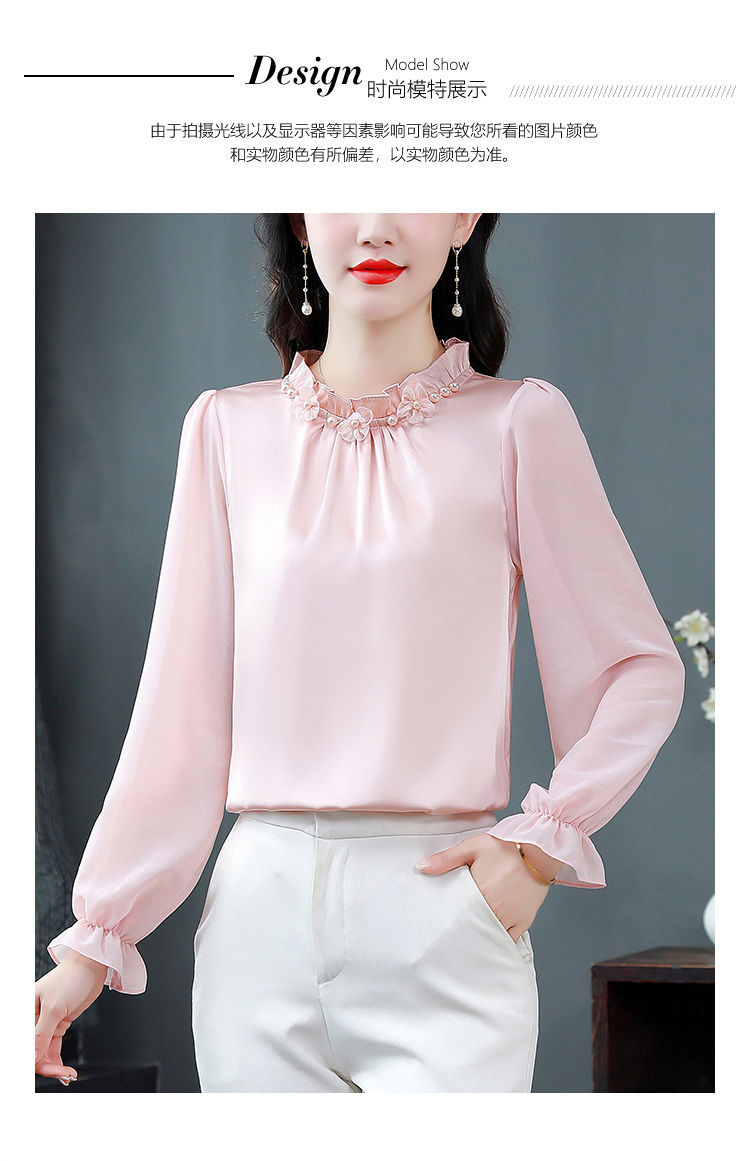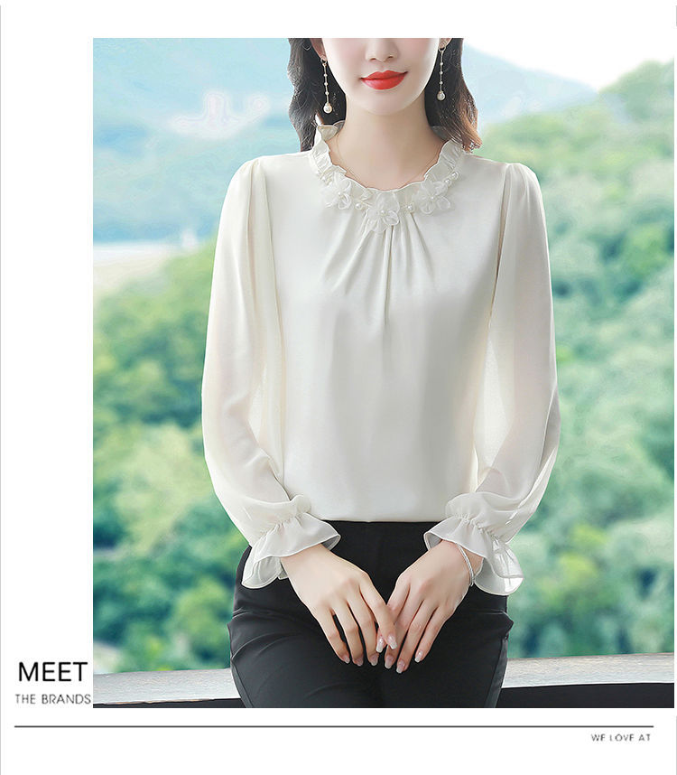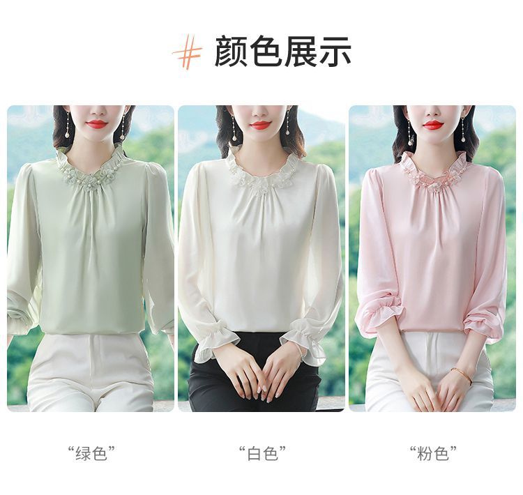 쉬폰 2025 새로운 봄, 가을 탑 여성 라이트 럭셔리 셔츠 배를 커버 다목적 스위트 긴팔 셔츠스토어 가기