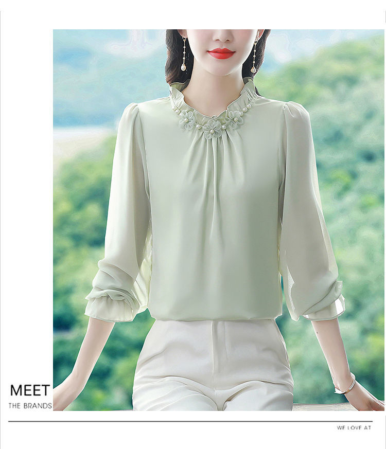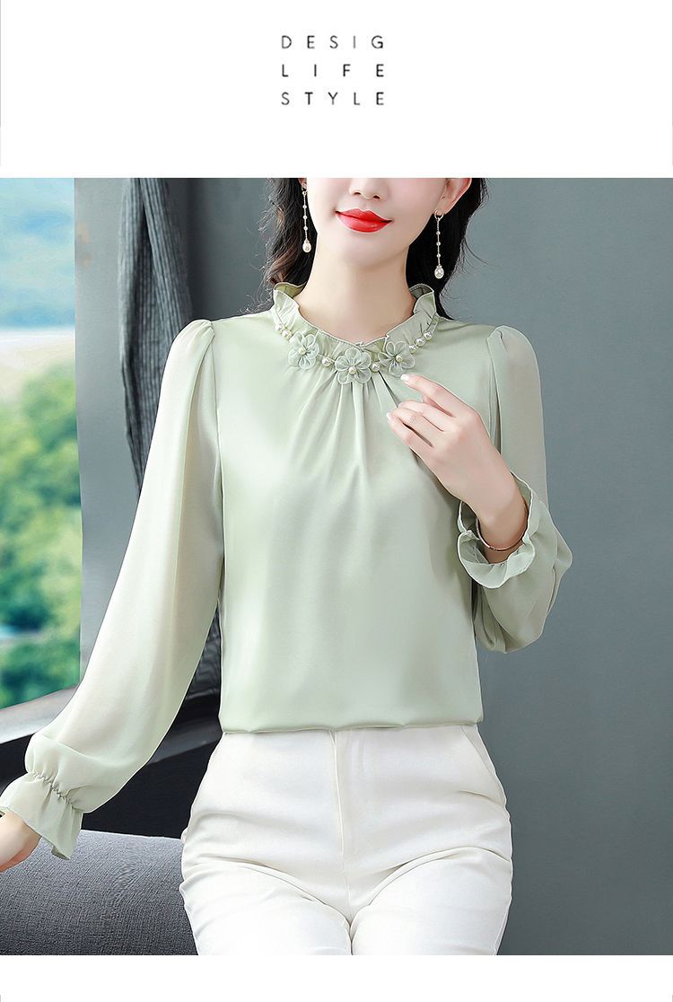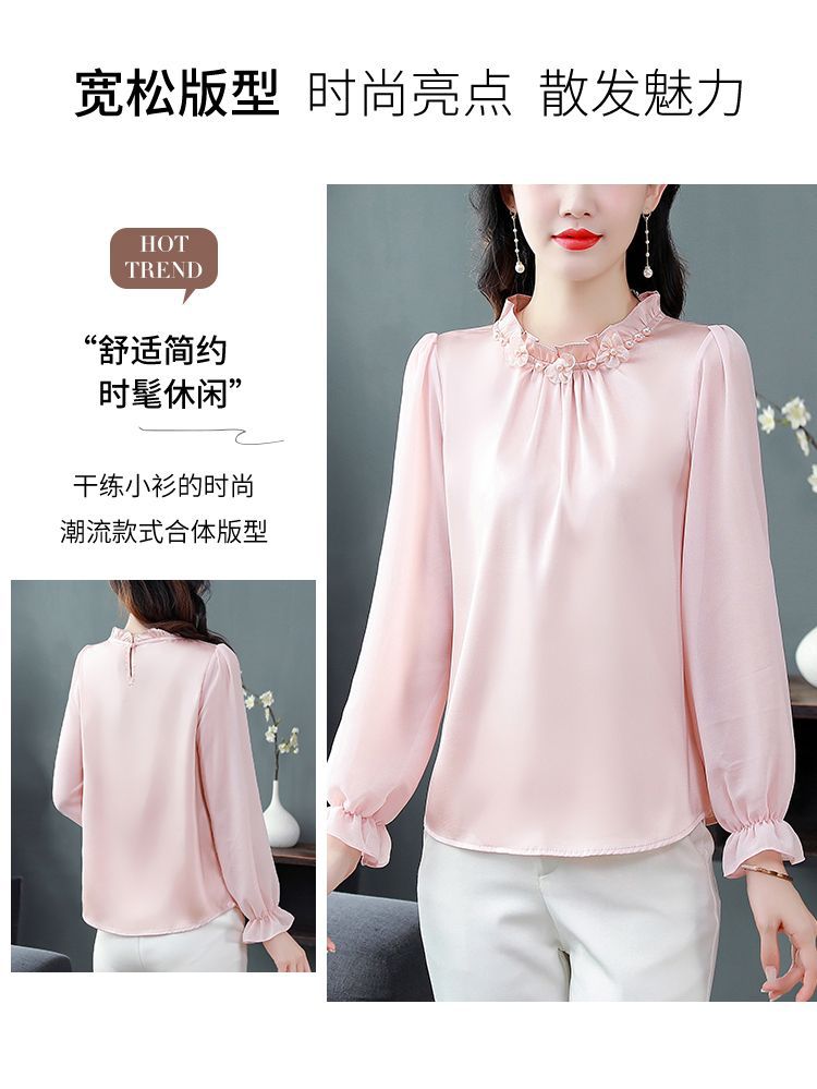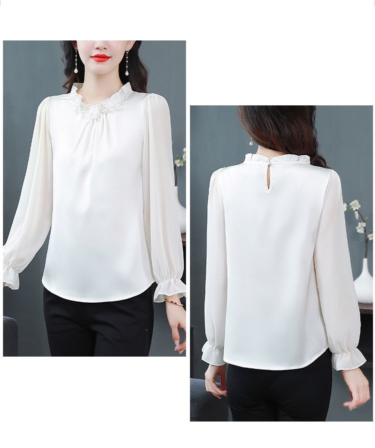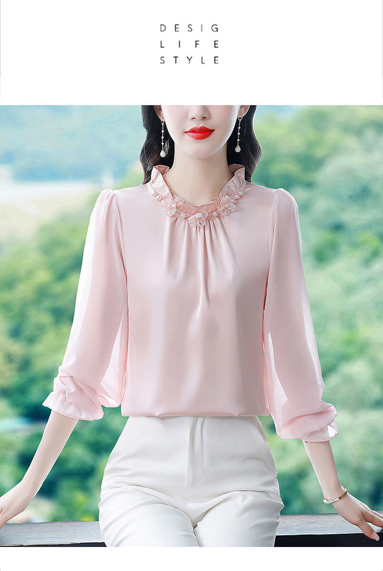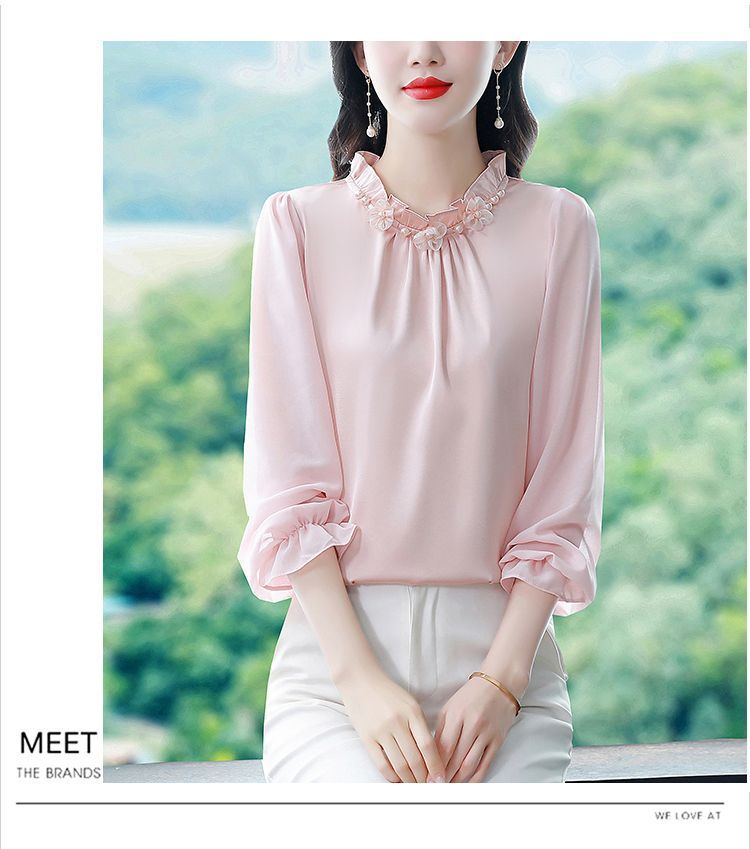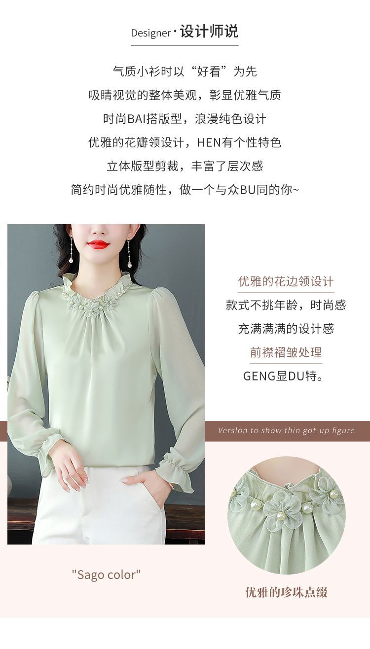 쉬폰 2025 새로운 봄, 가을 탑 여성 라이트 럭셔리 셔츠 배를 커버 다목적 스위트 긴팔 셔츠스토어 가기