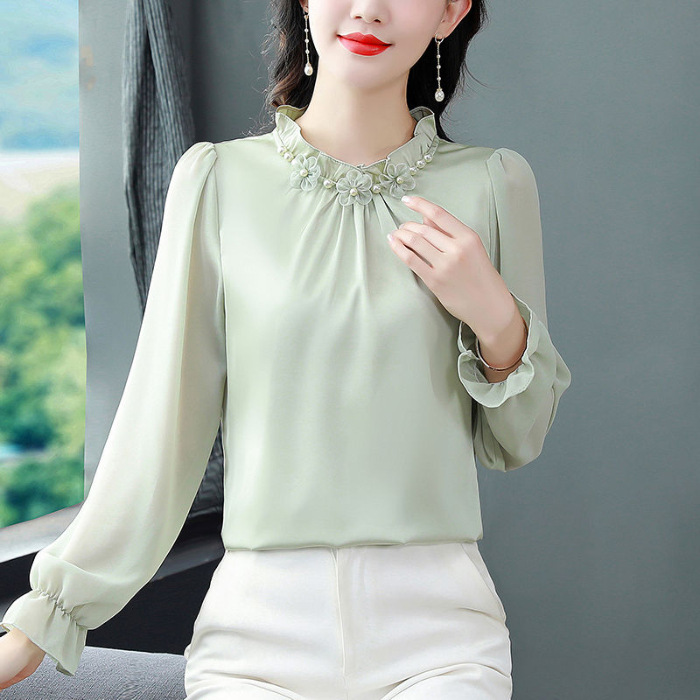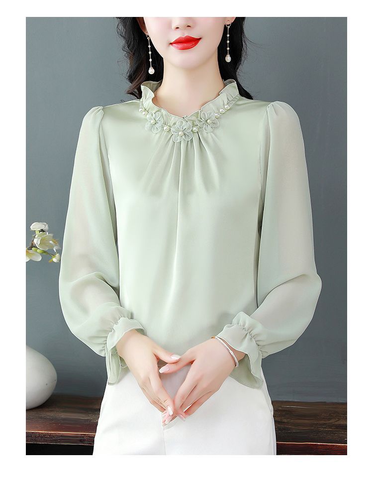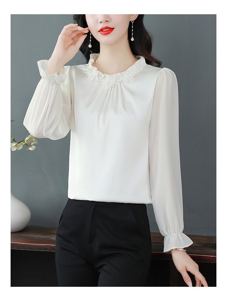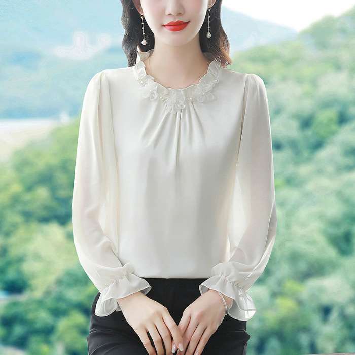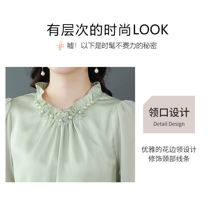 쉬폰 2025 새로운 봄, 가을 탑 여성 라이트 럭셔리 셔츠 배를 커버 다목적 스위트 긴팔 셔츠