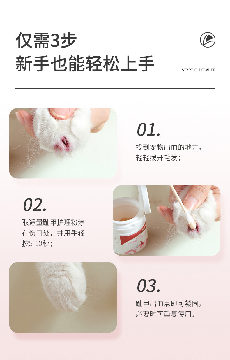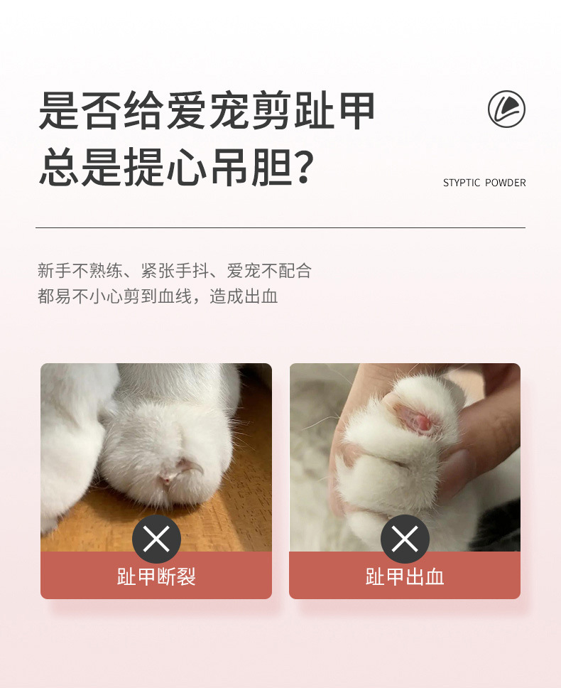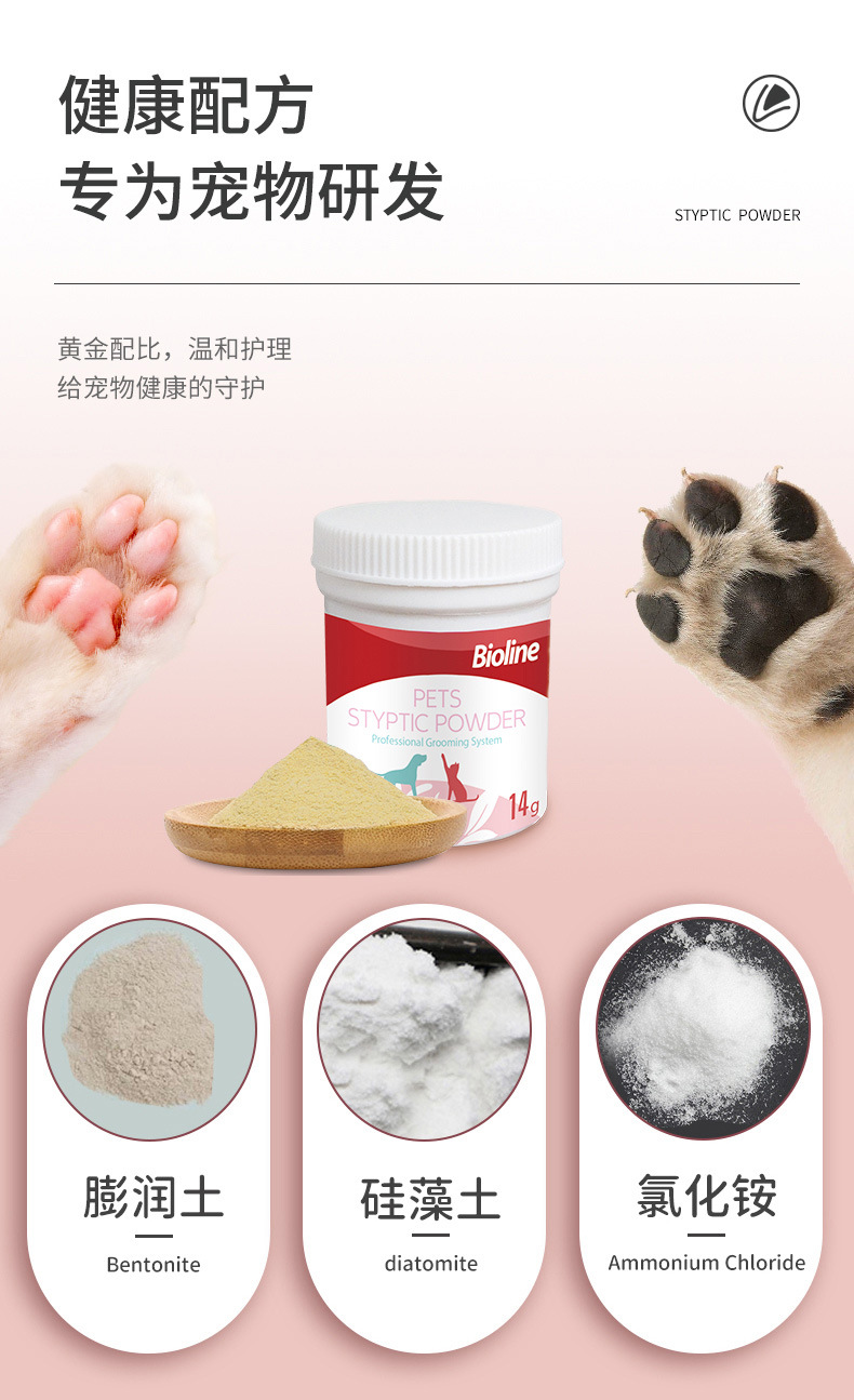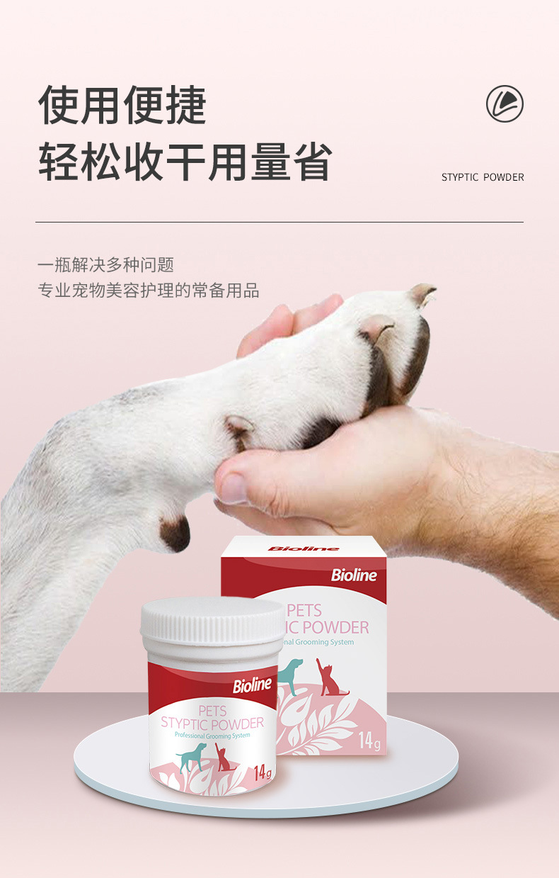 고양이와 개를 위한 바이오라인 애완동물 지혈분말, 손톱과 상처를 손상시키는 고양이용 속건성 외용 지혈분말