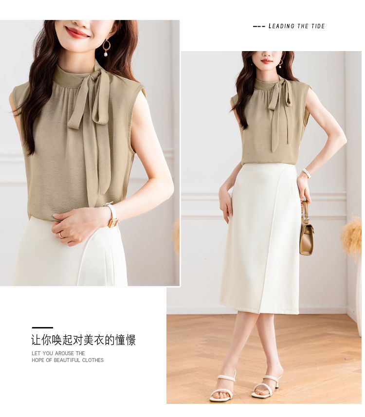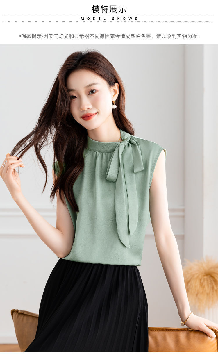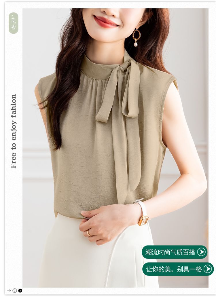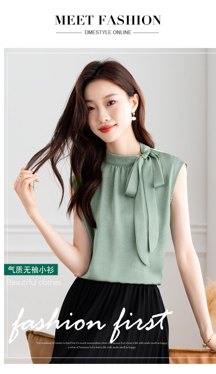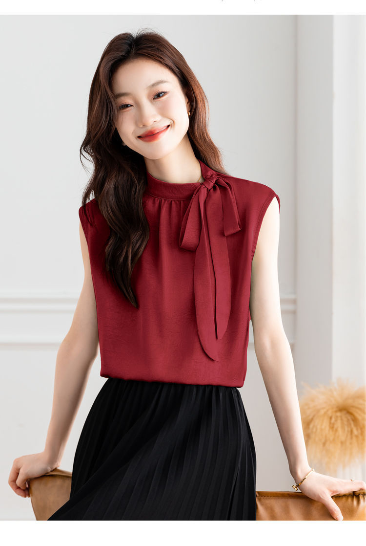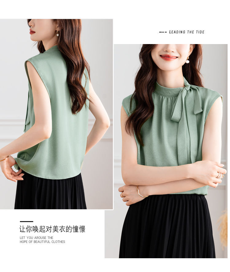 여름 여성을 위한 스탠드 칼라 보우 타이 쉬폰 셔츠, 새로운 스타일, 세련된 우아한 여성용 민소매 셔츠, 시크 탑스토어 가기