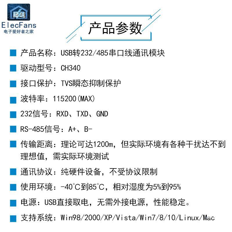 USB to RS232/RS485 직렬 포트 통신 전송 모듈 확장 보드 변환기 ch340 어댑터