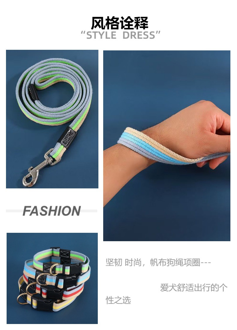 공장 직판 강아지 목줄, 튼튼하고 내구성 있는 캔버스 소재의 강아지 목줄과 목걸이 세트, 여행 및 산책 시 스타일리시한 반려견을 위한 제품
