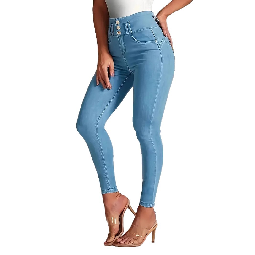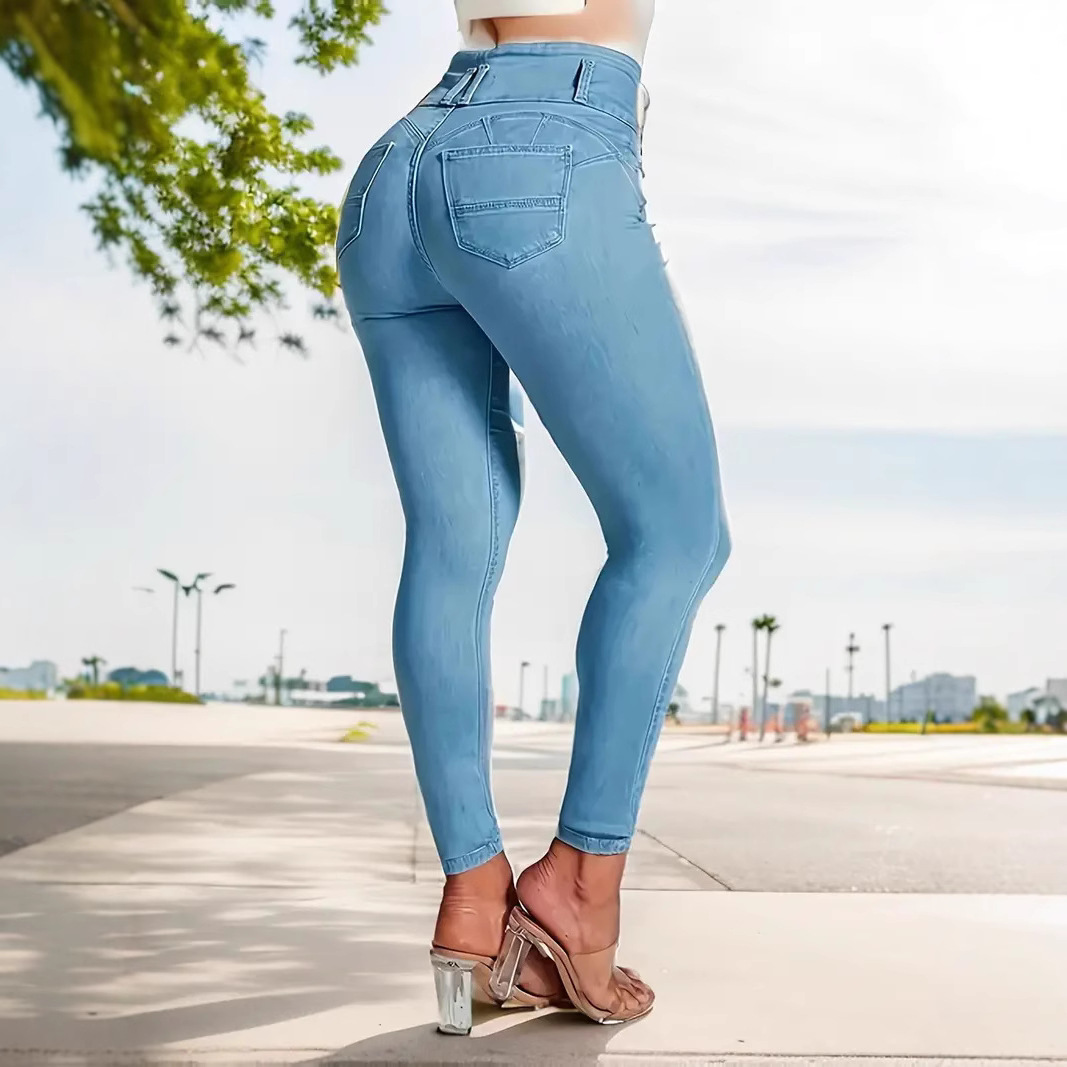 국경 간 Amazon 패션 2025 유럽과 미국 여성의 하이 웨이스트 엉덩이 리프팅 스트레치 데님 여성용 스키니 청바지.