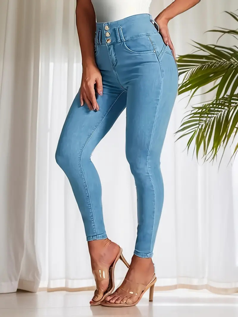 국경 간 Amazon 패션 2025 유럽과 미국 여성의 하이 웨이스트 엉덩이 리프팅 스트레치 데님 여성용 스키니 청바지.스토어 가기