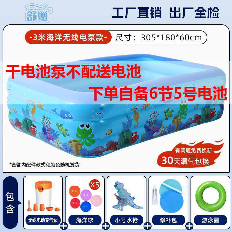 • 300cm 수영장 - 오션 프린트 3겹 두꺼워짐 - 배터리 야외 패키지 [야외 물놀이 플래시 충전]
