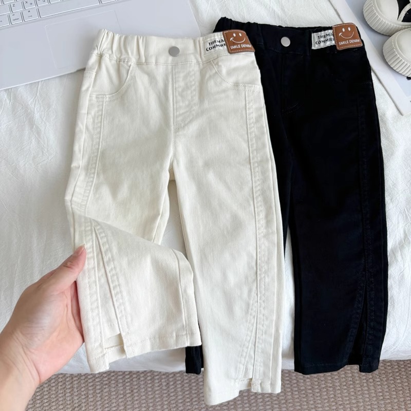 여아 바지 흰색 한국식 봄, 가을 2025 새로운 슬림핏 스타일 슬릿 패션 여아 다용도 바지스토어 가기