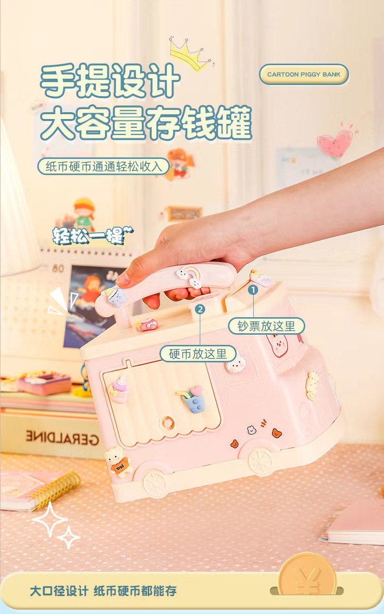 어린이 장난감 저금통, 돈을 넣을 수 있는 만능 저금통, 만화 소녀 생일 선물, 창의적인 자동차