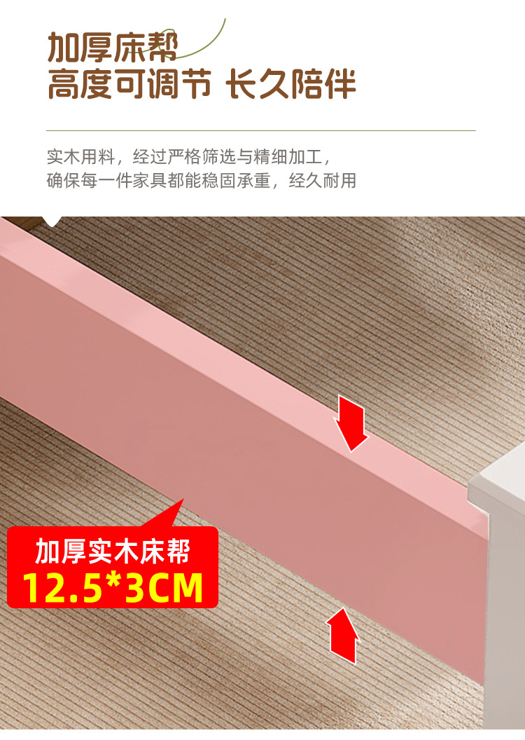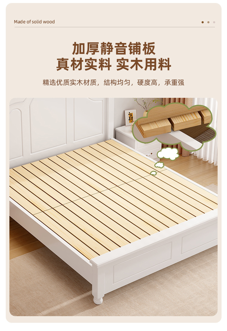 • 원목 침대 + 더블 서랍 + 5cm 매트리스 + 침대 옆 테이블 * 1 [위층 설치 포함]