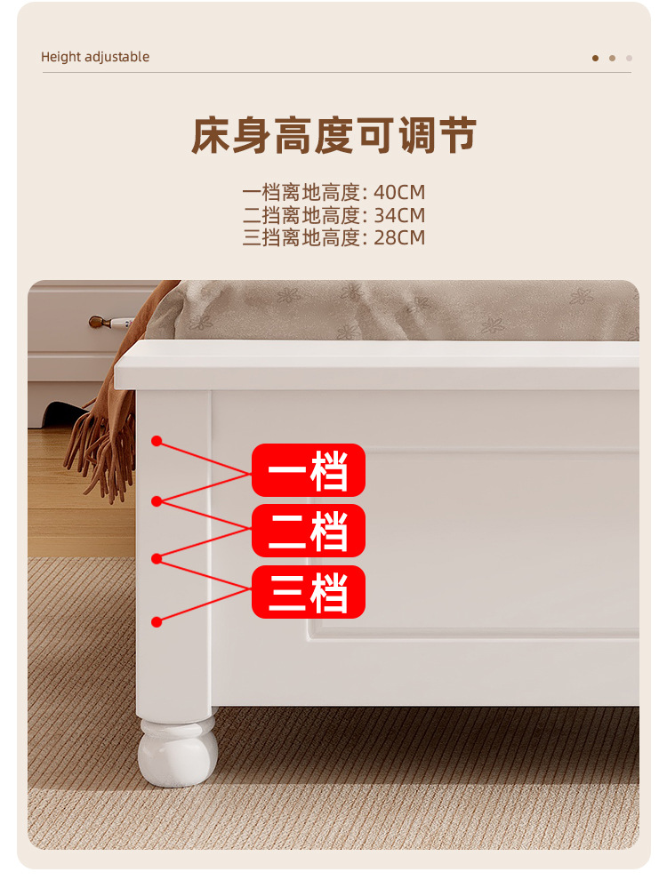 • 원목 침대 + 더블 서랍 + 10cm 매트리스 + 침대 옆 테이블 * 1 [위층 설치 포함]
