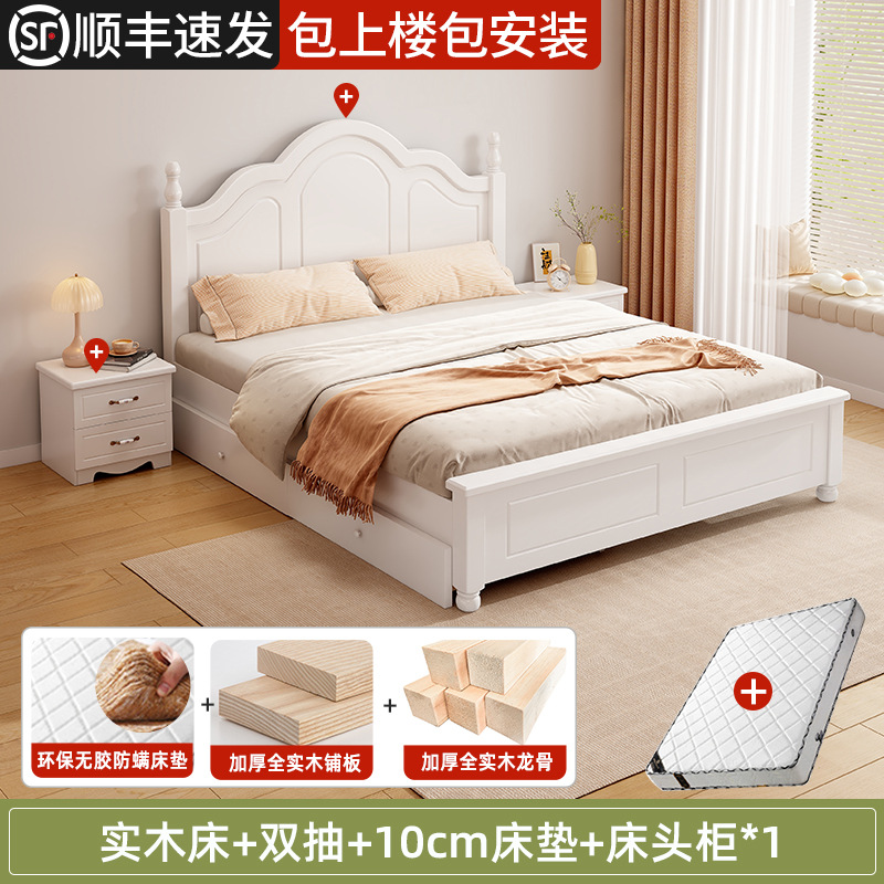 • 원목 침대 + 더블 서랍 + 10cm 매트리스 + 침대 옆 테이블 * 1 [집까지 무료 배송]