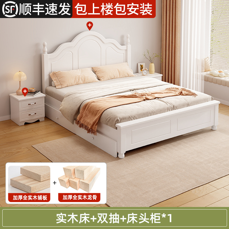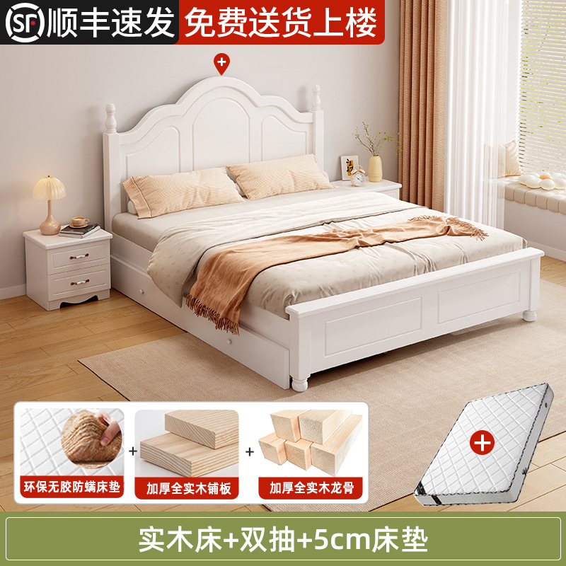 • 원목 침대 + 더블 서랍 + 5cm 매트리스 + 침대 옆 테이블 * 1 [집까지 무료 배송]