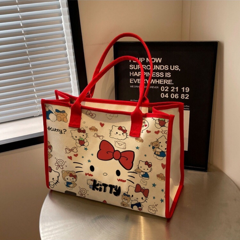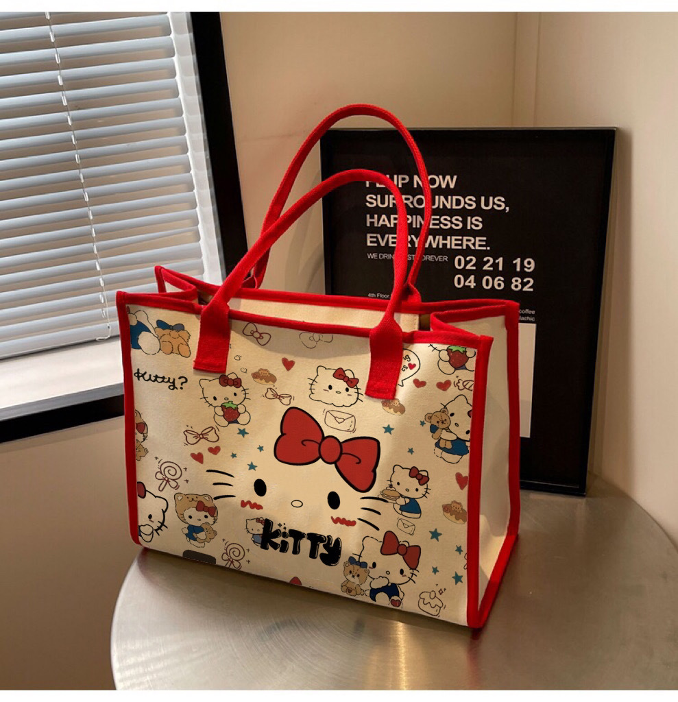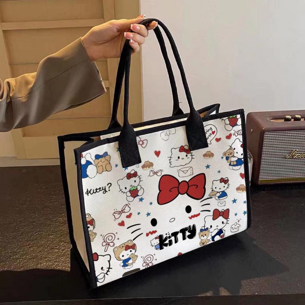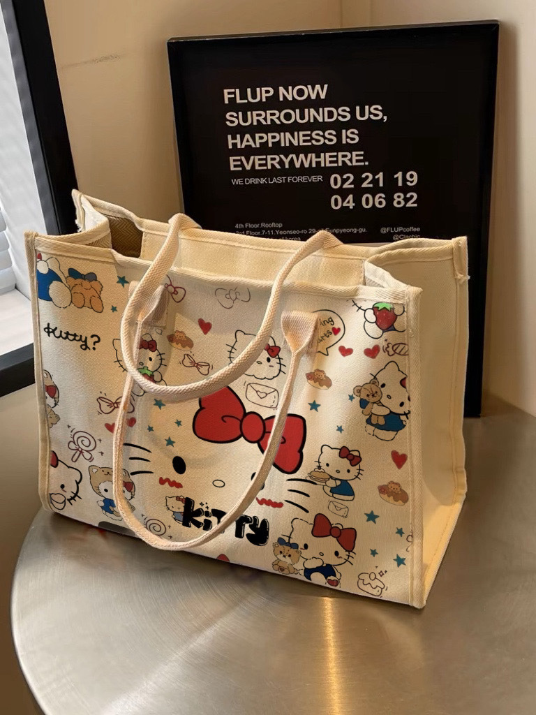고급스러운 만화 키티 숄더백, 다용도 대용량 학생 캔버스 가방, 통근 토트백, 여성용 외출가방 A16스토어 가기