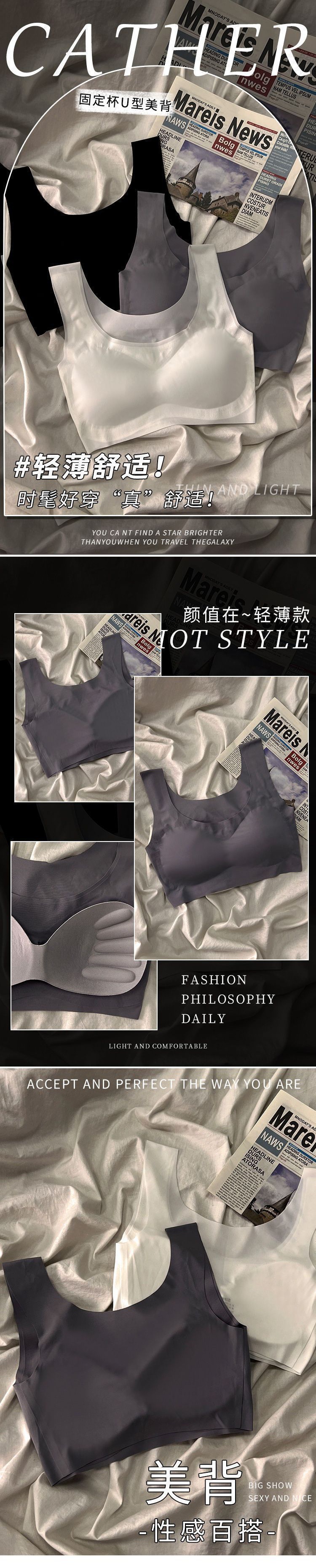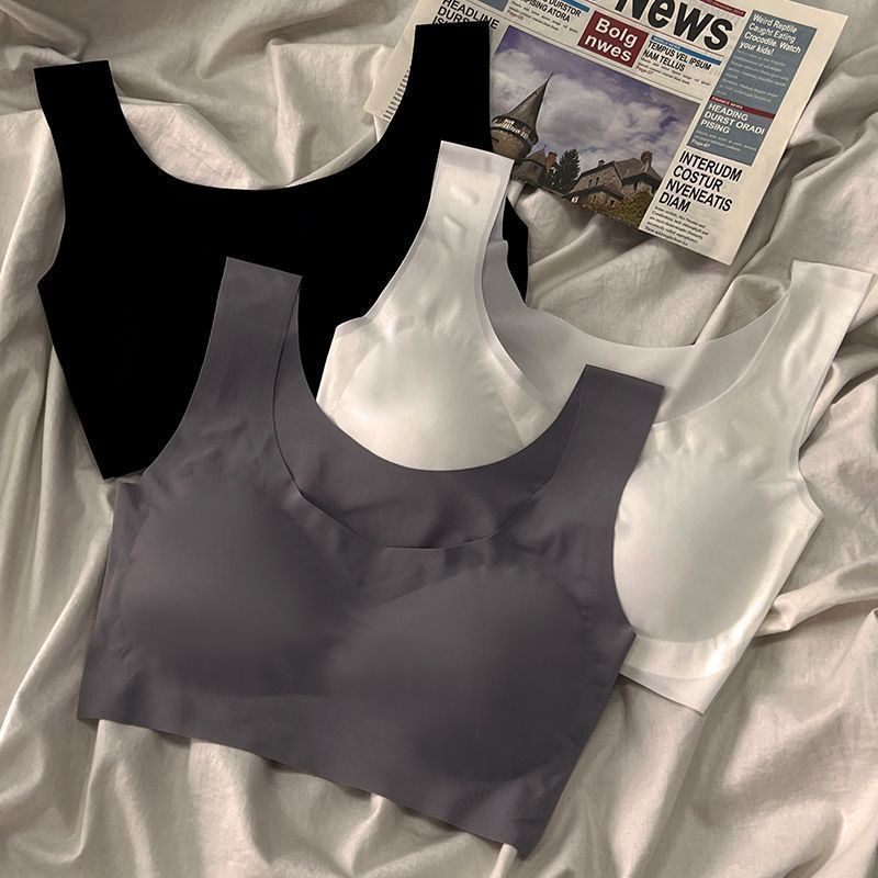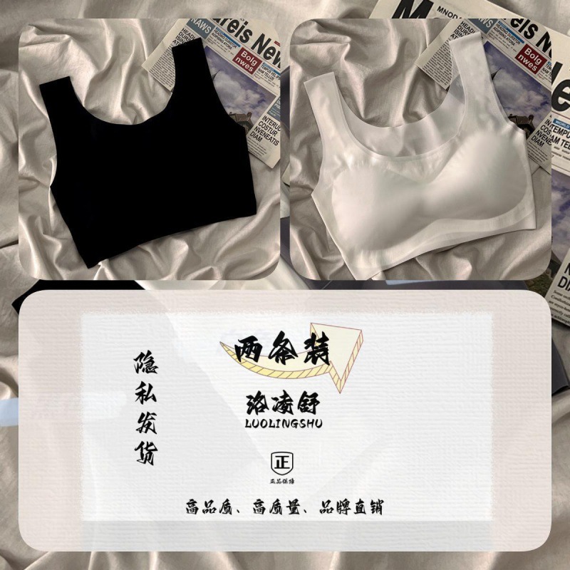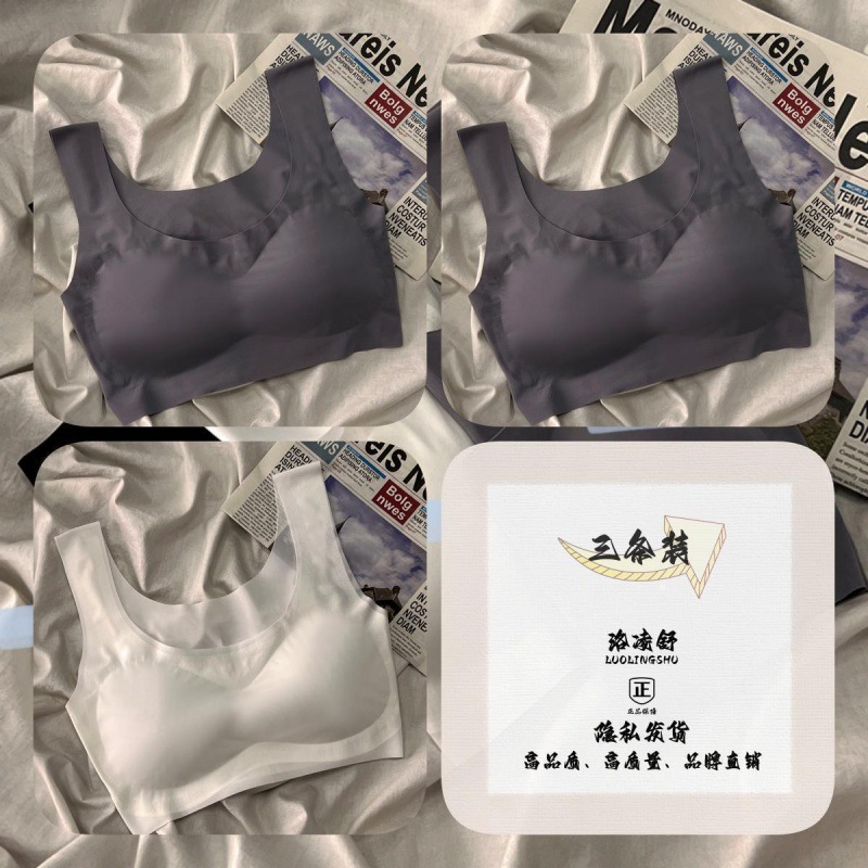 아이스 실크 심리스 속옷 여성용 통기성 와이어 프리 소녀 브라 푸시 업 유방 노출 작은 조끼스토어 가기