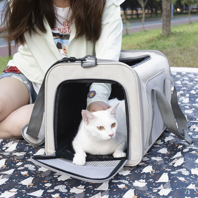 고양이 가방, 휴대용, 통기성, 대용량, 자동차 탑재형, 휴대용, 원 숄더, 크로스 바디 캔버스, 접이식 고양이 및 개 가방, 애완 동물 가방스토어 가기