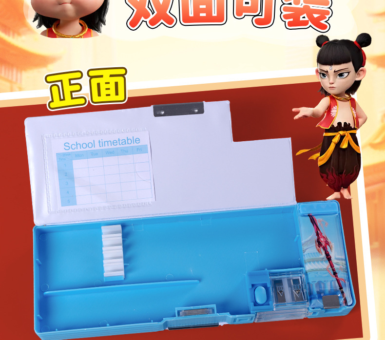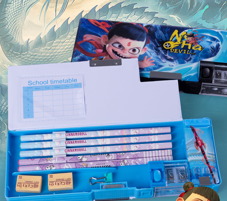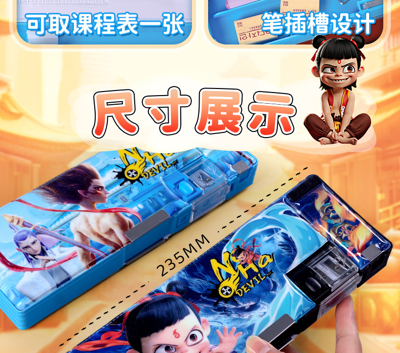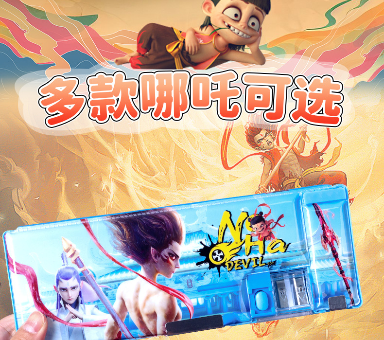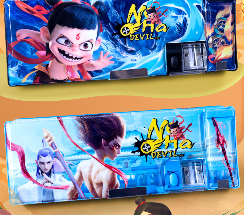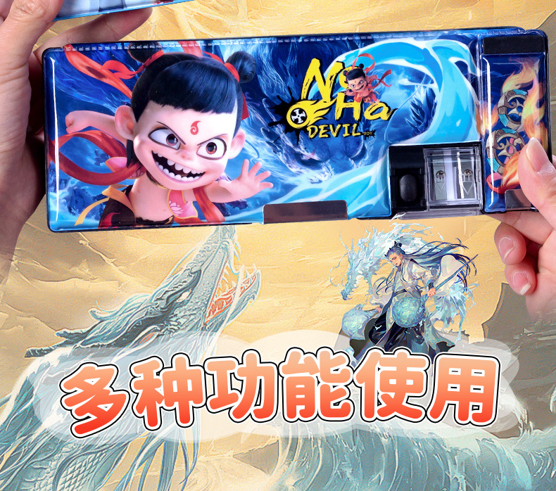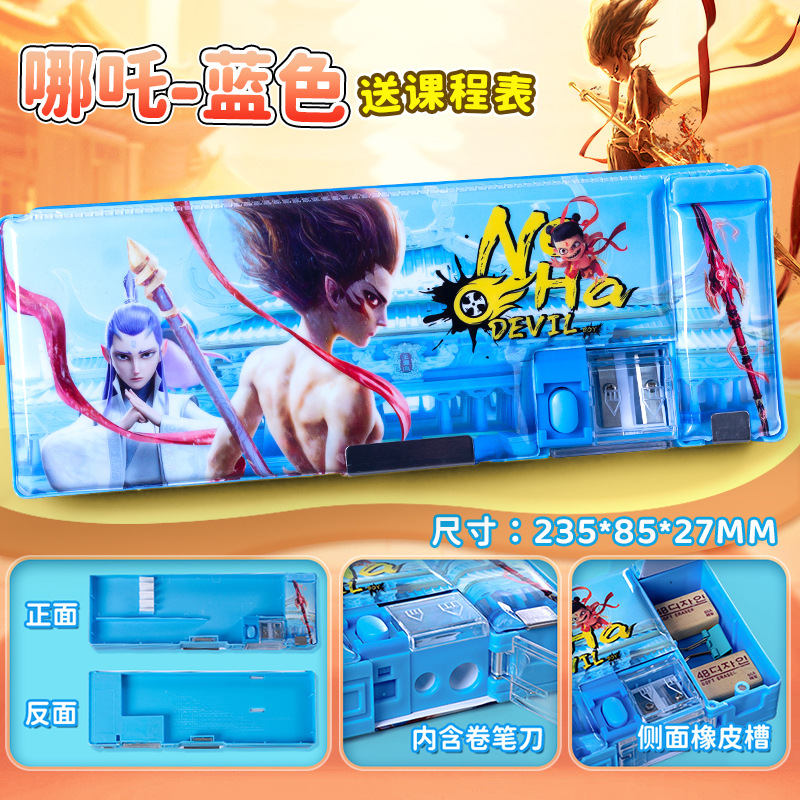 Na Zha 다기능 문구 상자 소년 더블 레이어 어린이 연필 상자 초등학생 대용량 만화 Ao Bing 보관 상자스토어 가기