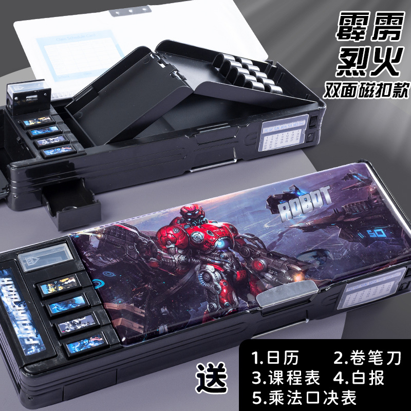Na Zha 다기능 문구 상자 소년 더블 레이어 어린이 연필 상자 초등학생 대용량 만화 Ao Bing 보관 상자