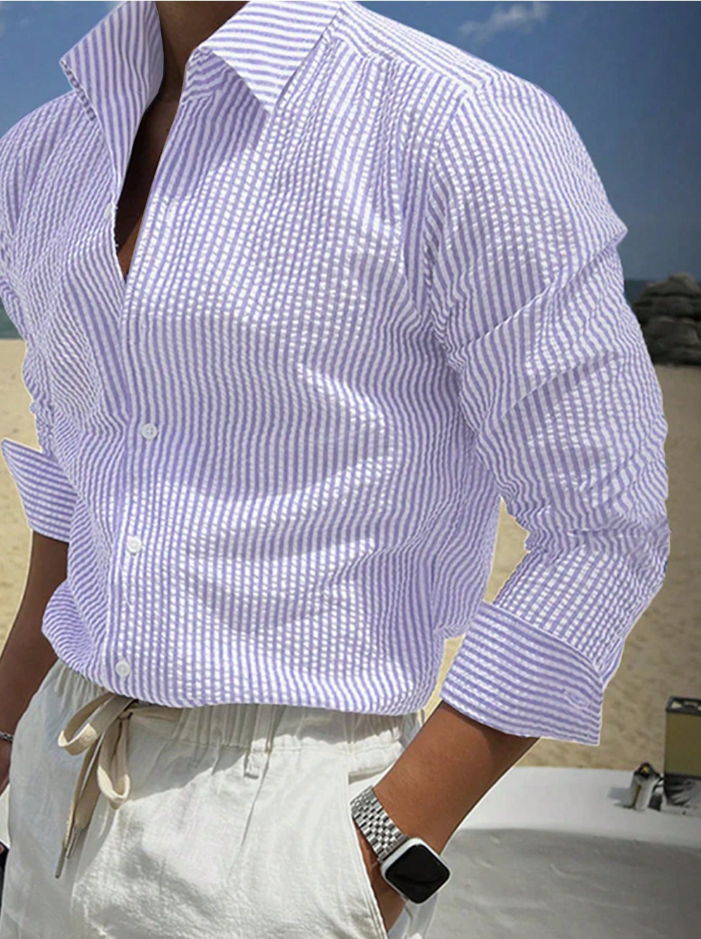 2025 국경 아마존 남성 패션 줄무늬 카디건 옷깃 긴팔 셔츠