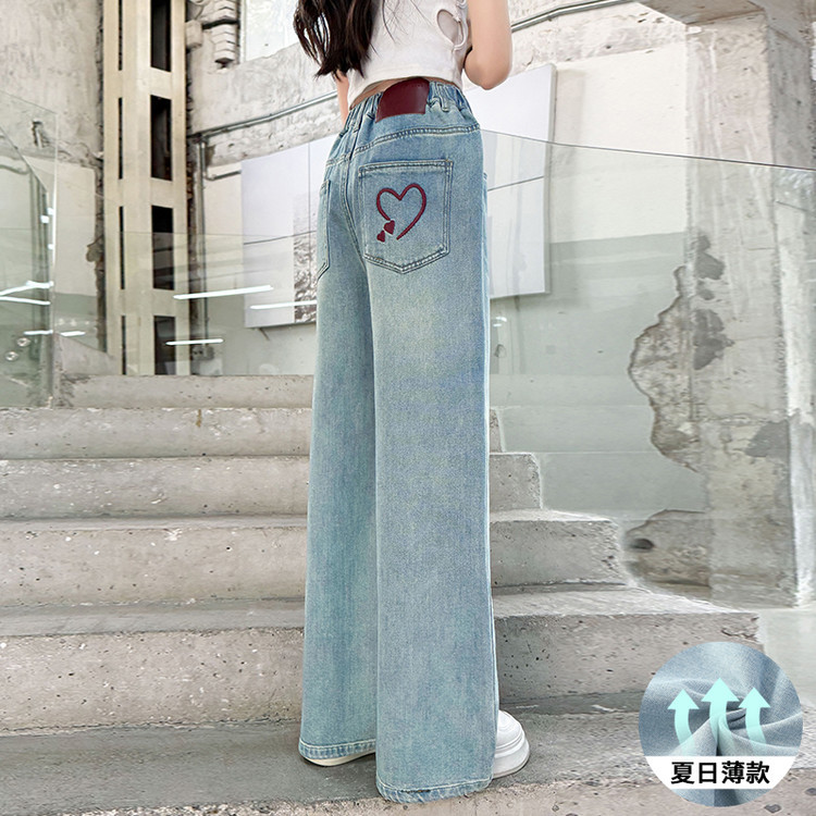 중대형 아동용 얇은 청바지, 여아용 루즈한 와이드 팬츠, 여름 루즈한 신형 스트레이트 팬츠스토어 가기