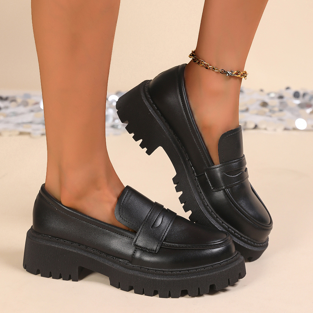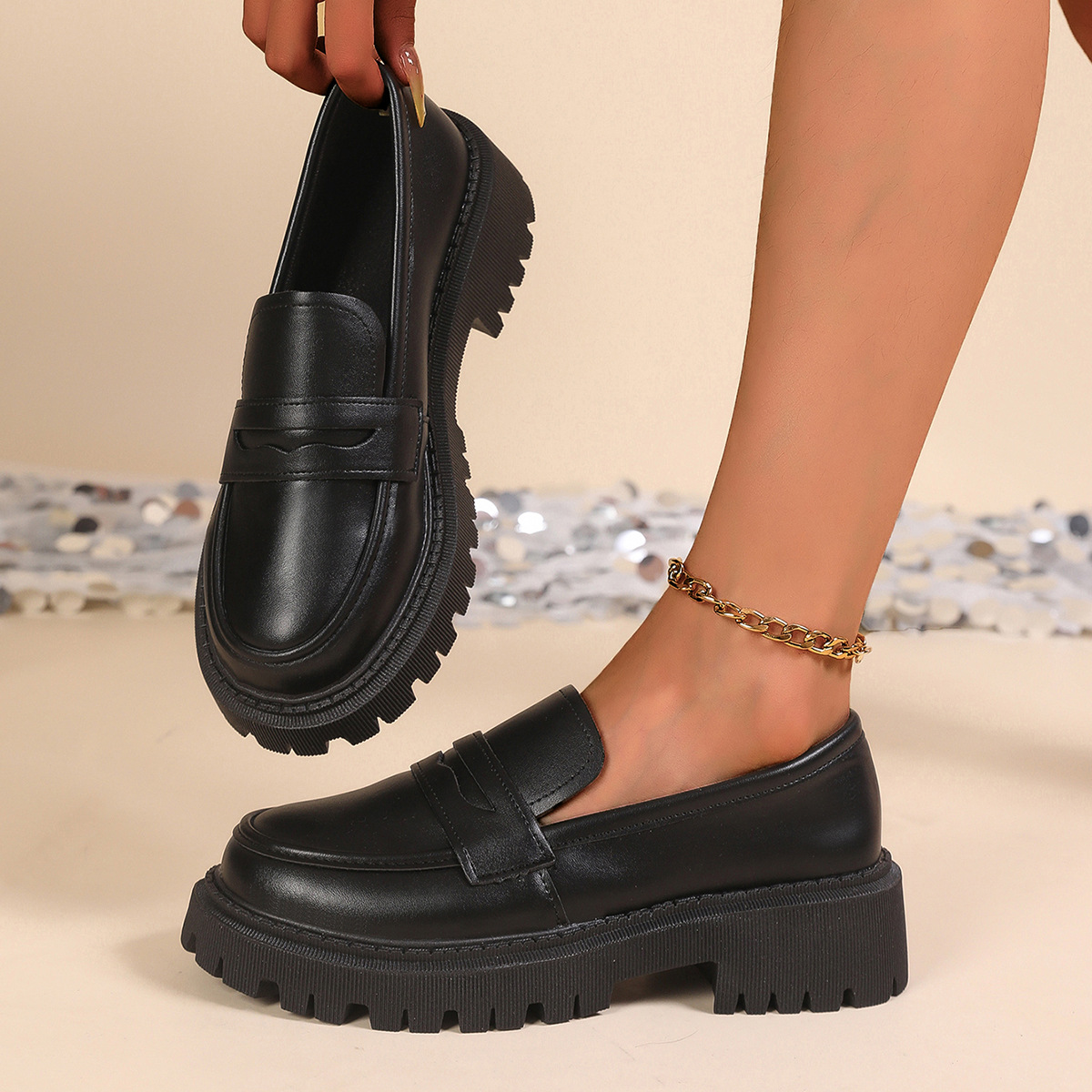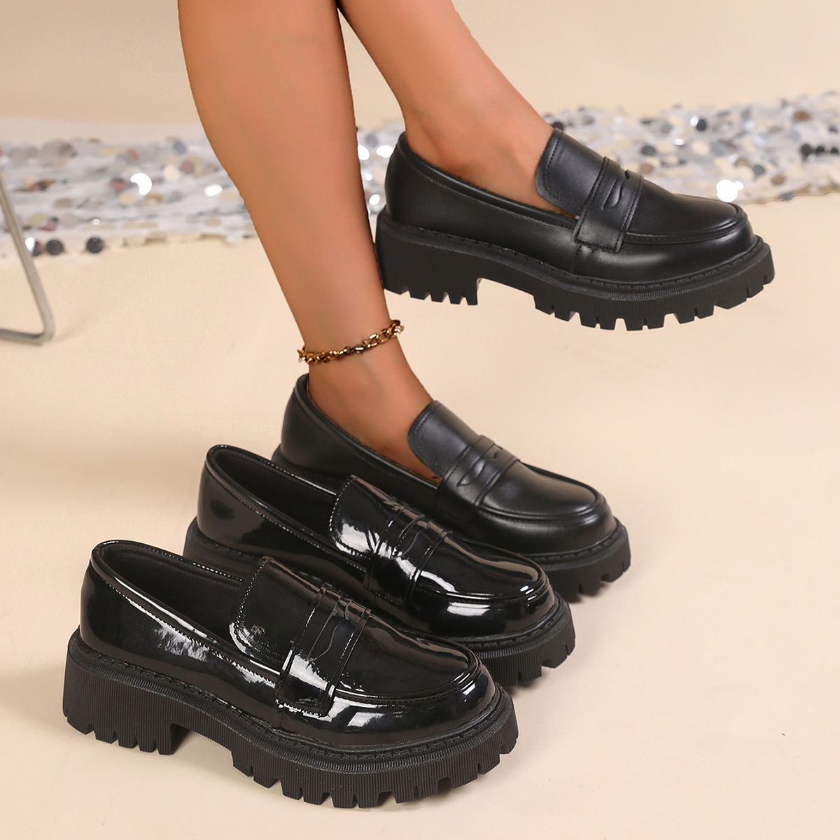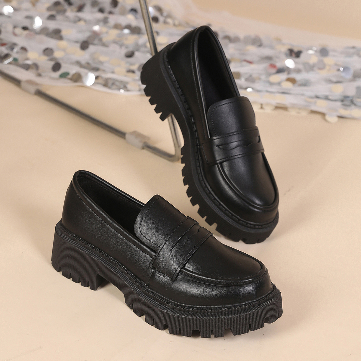 봄 신작 여성용 로퍼, 영국식, 다재다능하고 편안한 슬립온 두꺼운 밑창의 작은 가죽 신발, 둥근 발가락과 두꺼운 굽의 여성용 신발스토어 가기