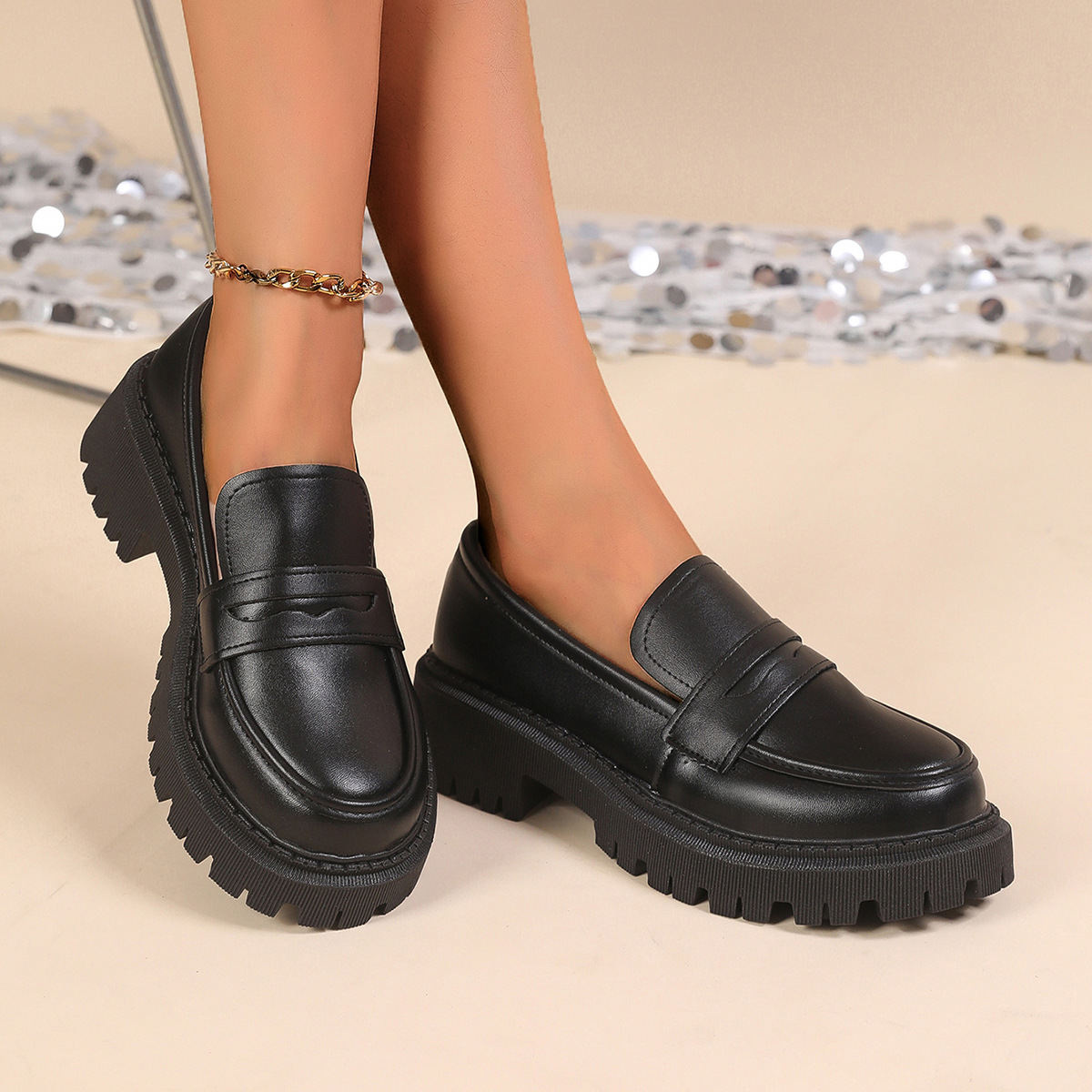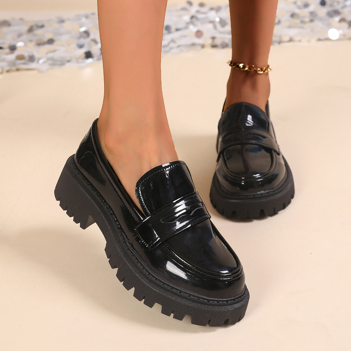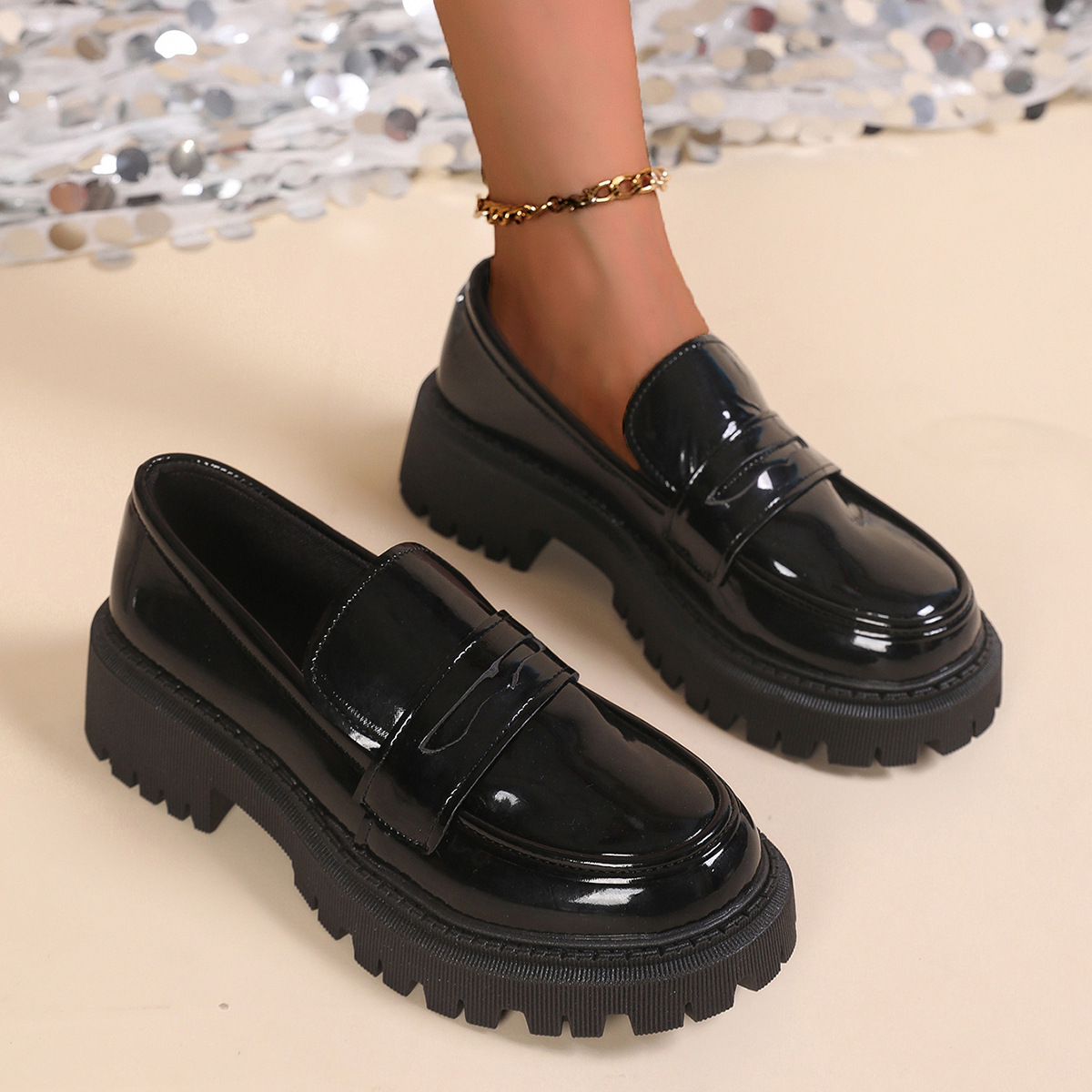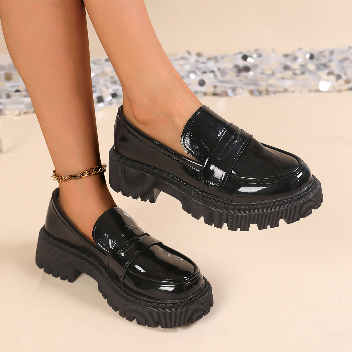 봄 신작 여성용 로퍼, 영국식, 다재다능하고 편안한 슬립온 두꺼운 밑창의 작은 가죽 신발, 둥근 발가락과 두꺼운 굽의 여성용 신발스토어 가기