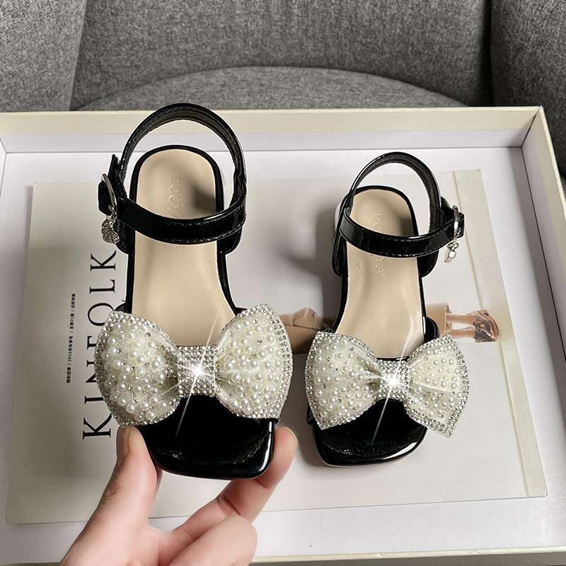 소녀 샌들 2025 여름 새로운 스타일 중대형 어린이 어린 소녀 어린이 크리스탈 활 하이힐 부드러운 밑창 공주 신발
