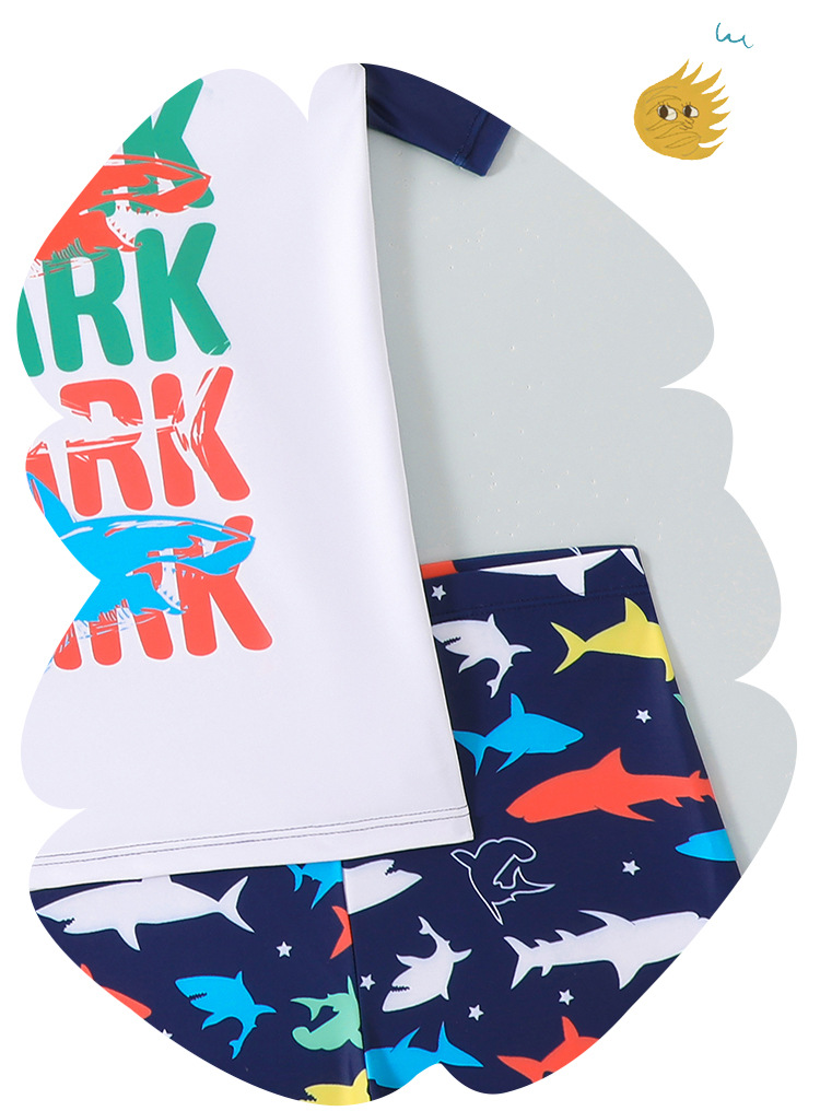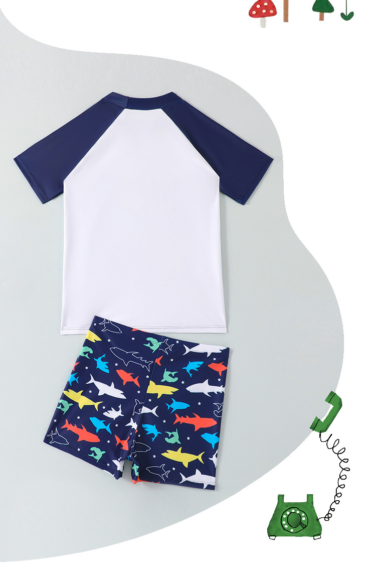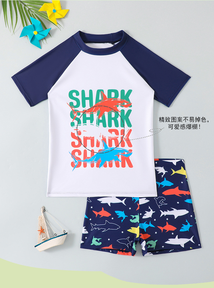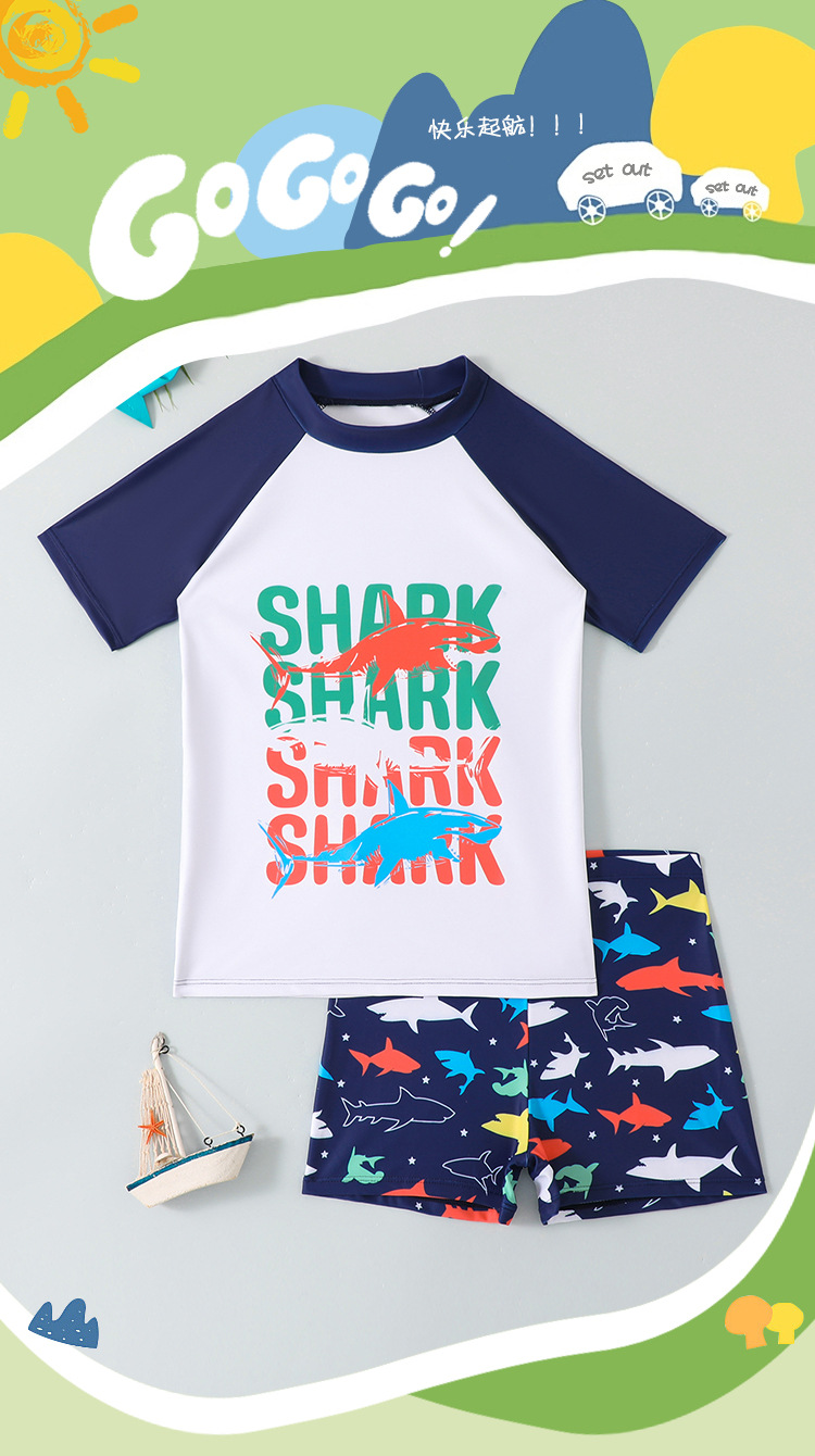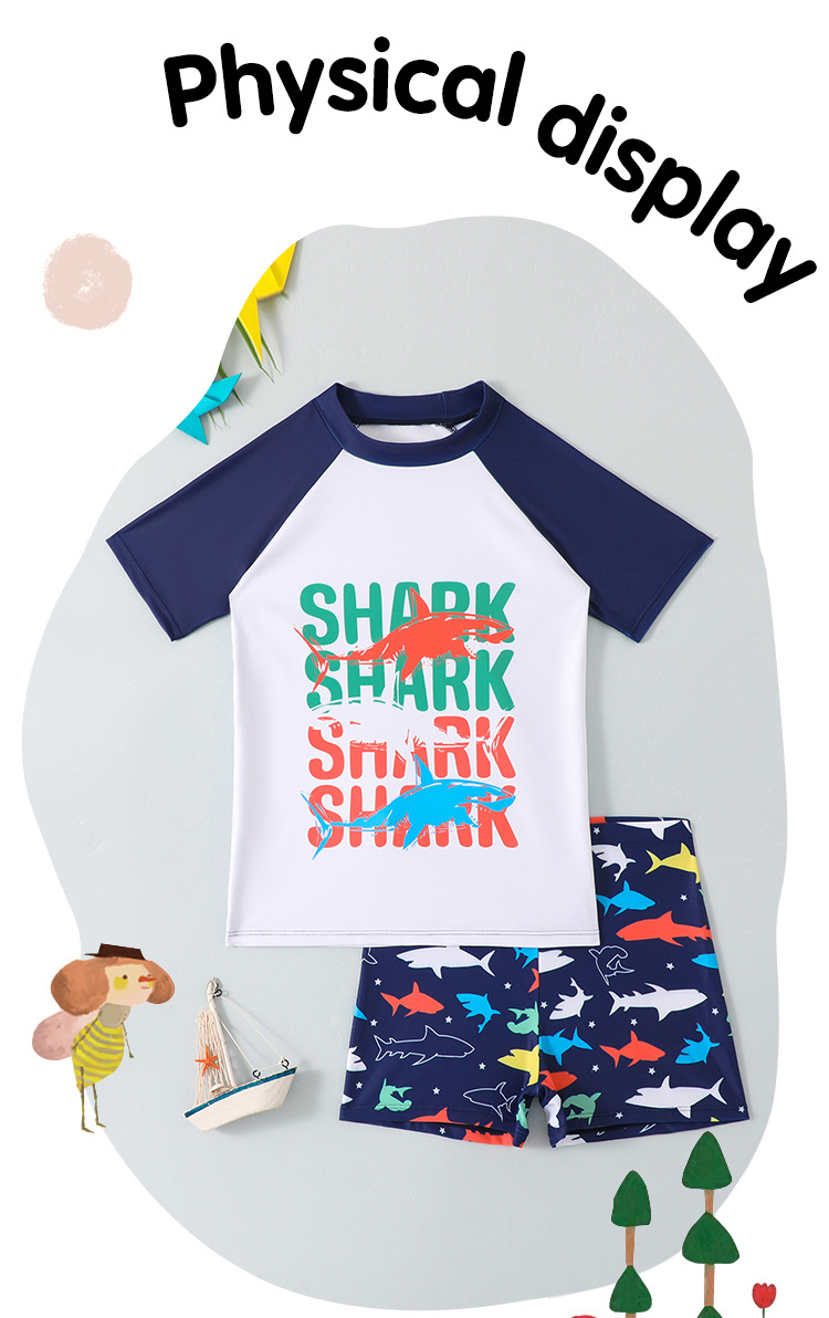 2025 새로운 어린이 수영복 스플릿 소년 반팔 수영 트렁크 정장 대형 소년 학생 수영복 크로스 보드 현장스토어 가기