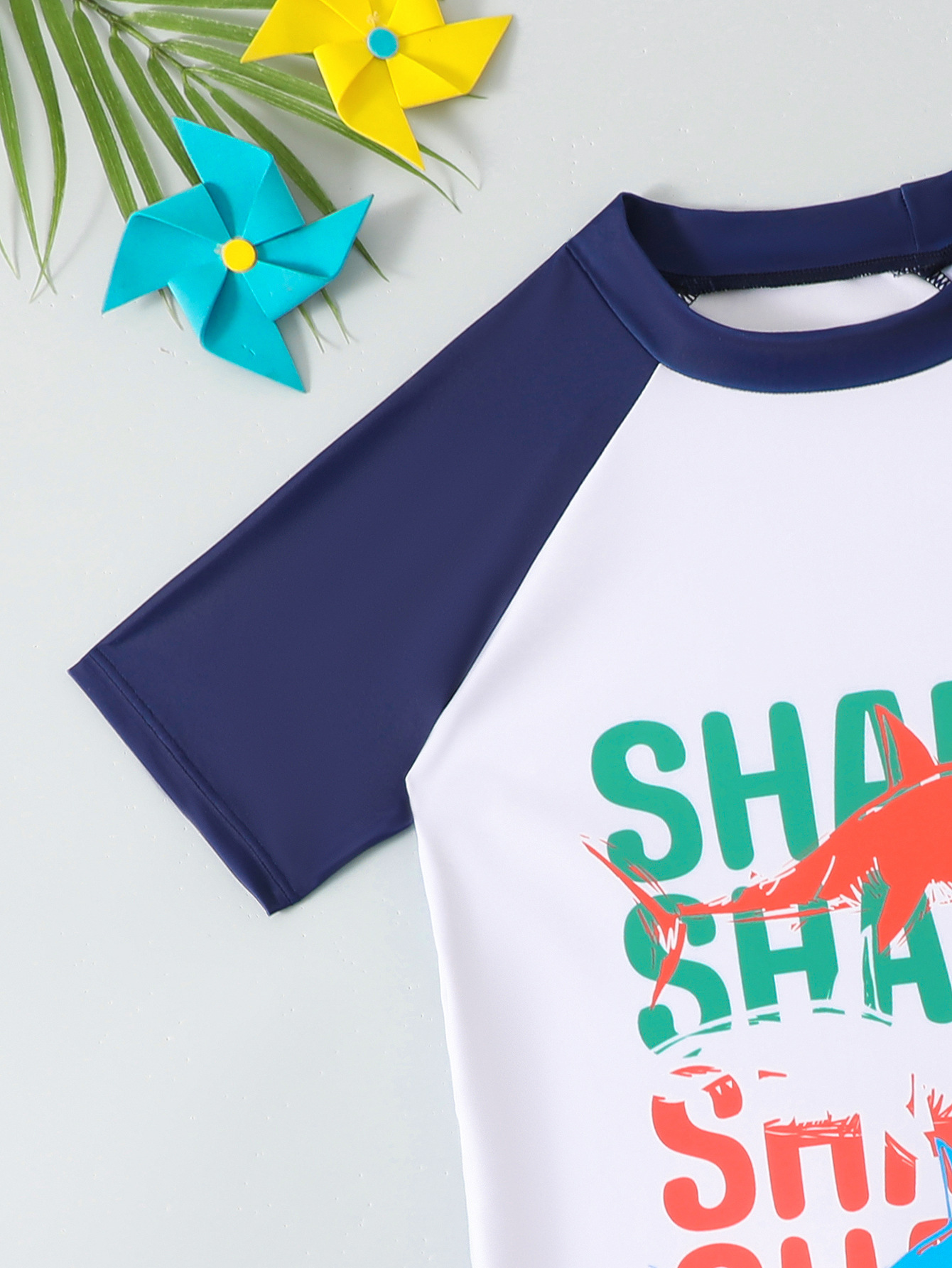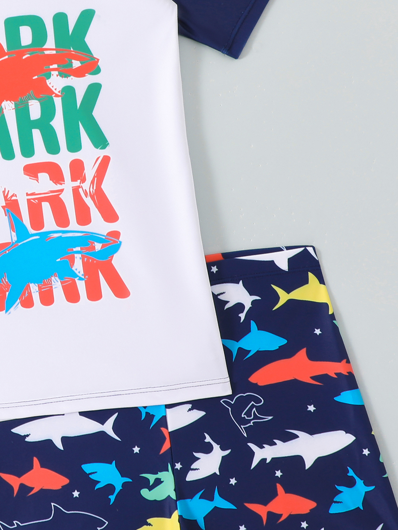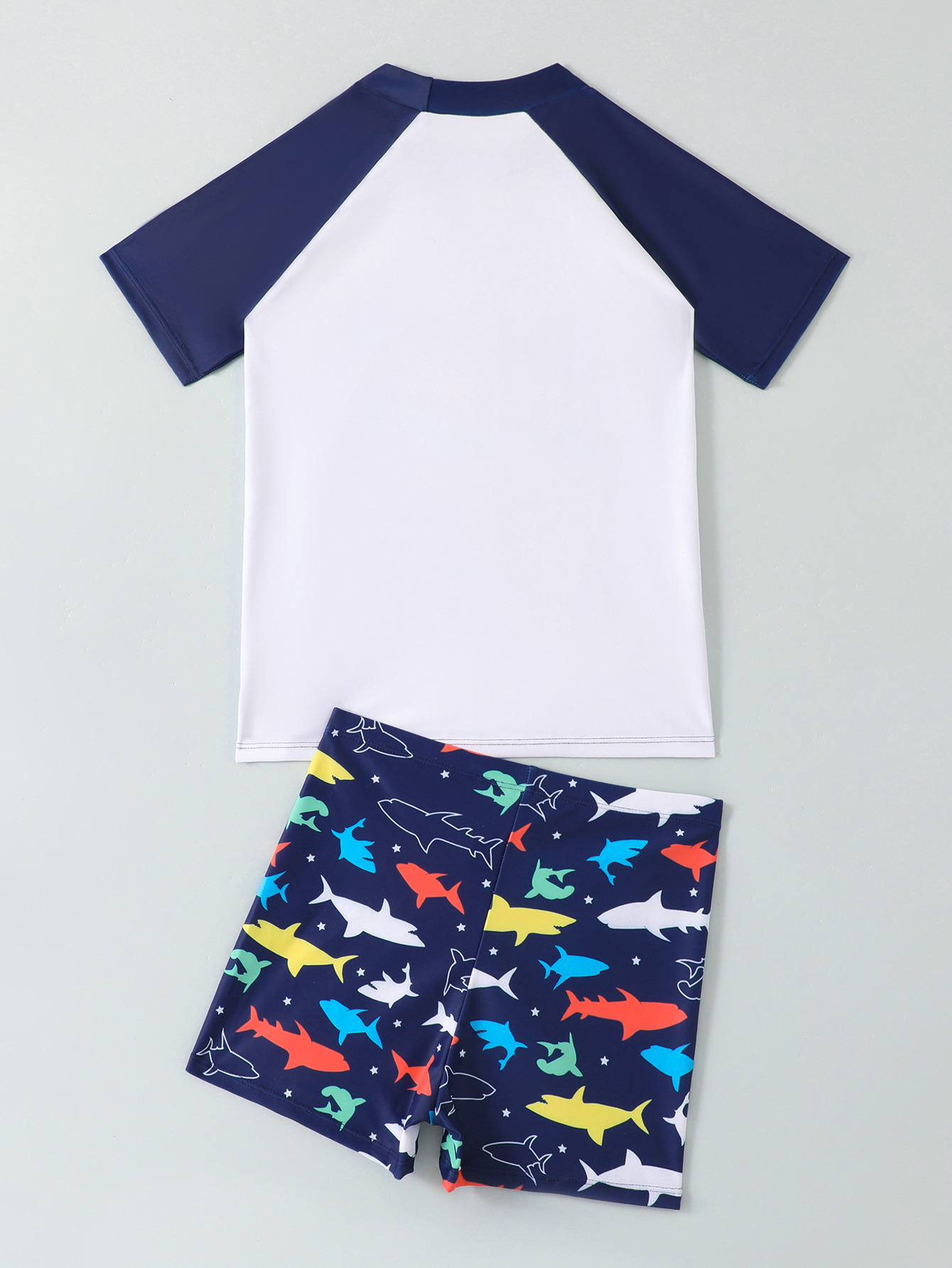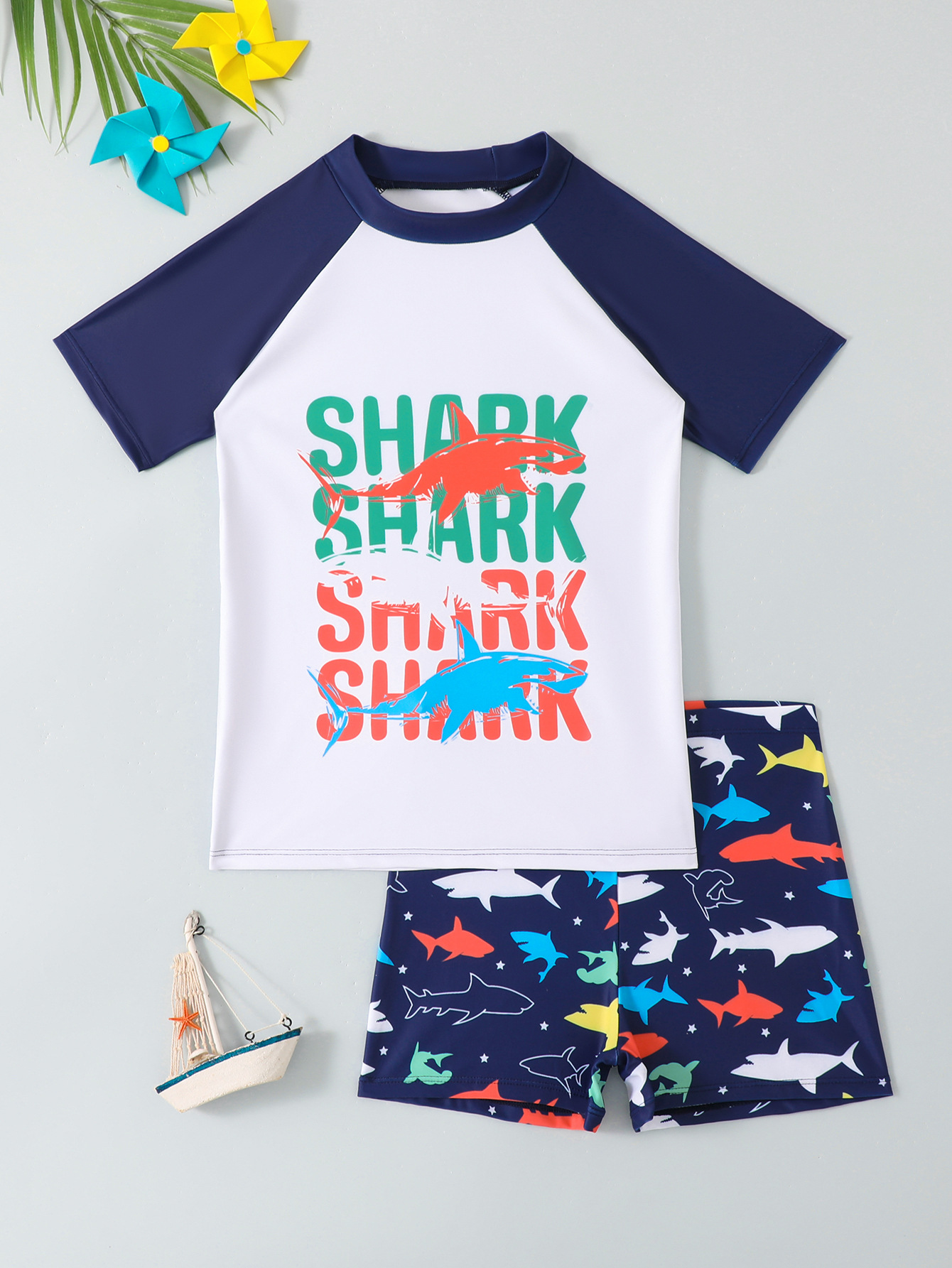 2025 새로운 어린이 수영복 스플릿 소년 반팔 수영 트렁크 정장 대형 소년 학생 수영복 크로스 보드 현장스토어 가기