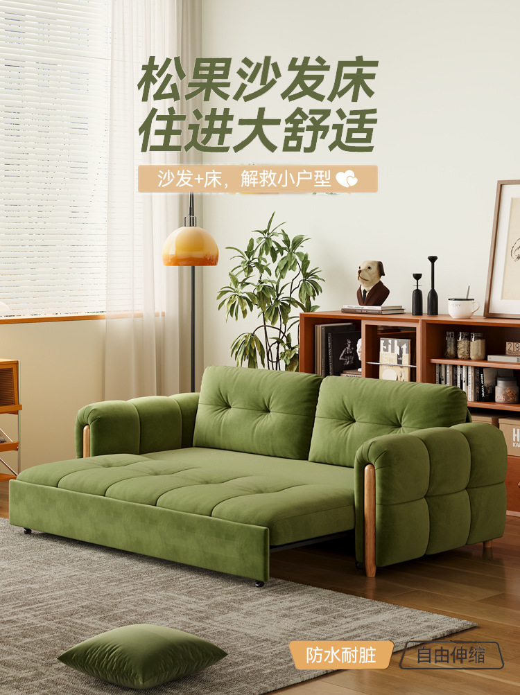 오청 송과나무 소파베드 원목 크림 스타일 소형 다기능 접이식 침대 수납형 슬라이딩 좌식/누워식