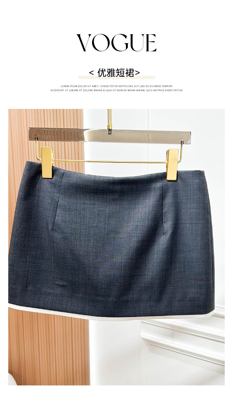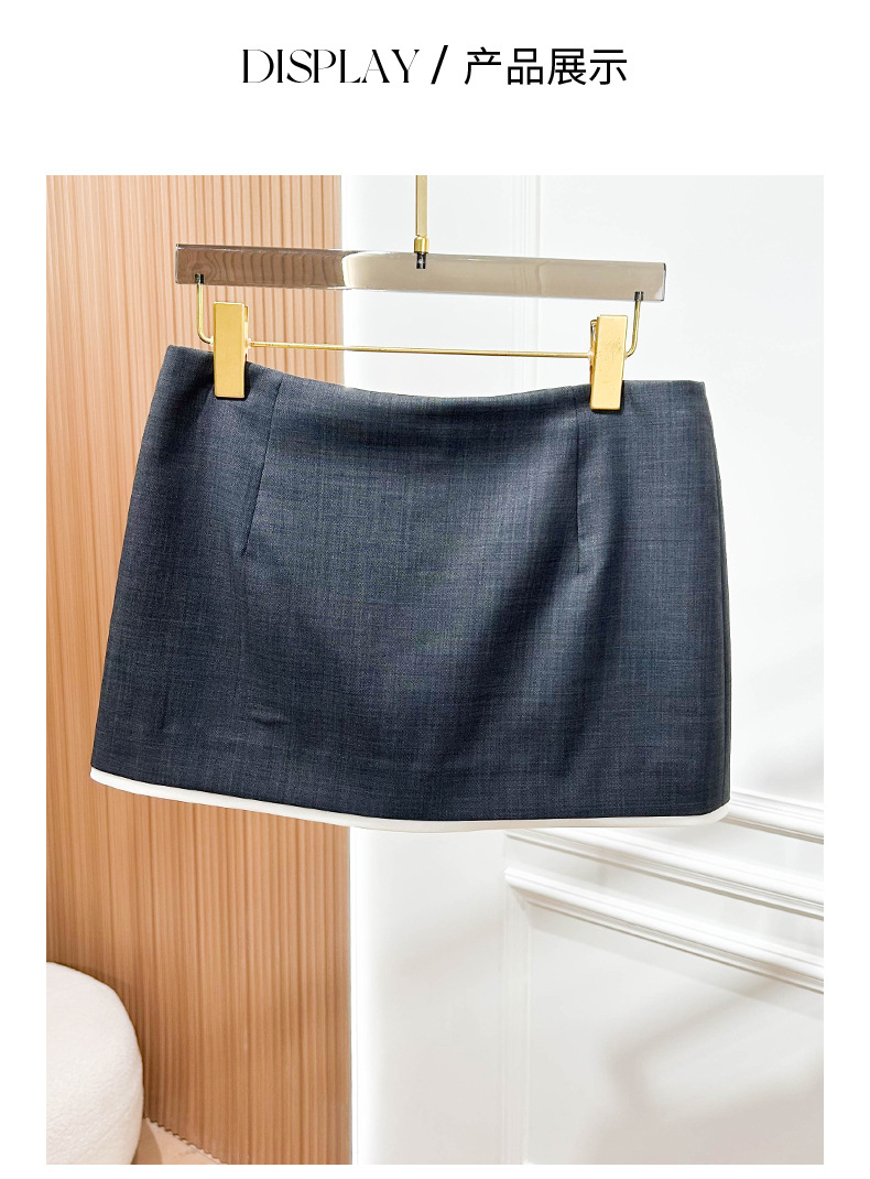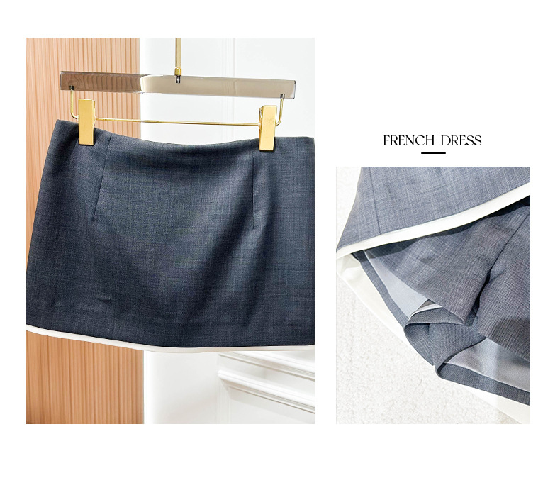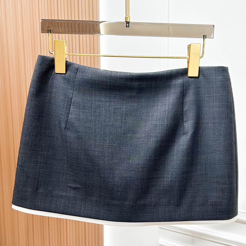 2025 새로운 여성 의류 대비 색상 트림 대비 트림 니트 미니 스커트 a 라인 짧은 스커트