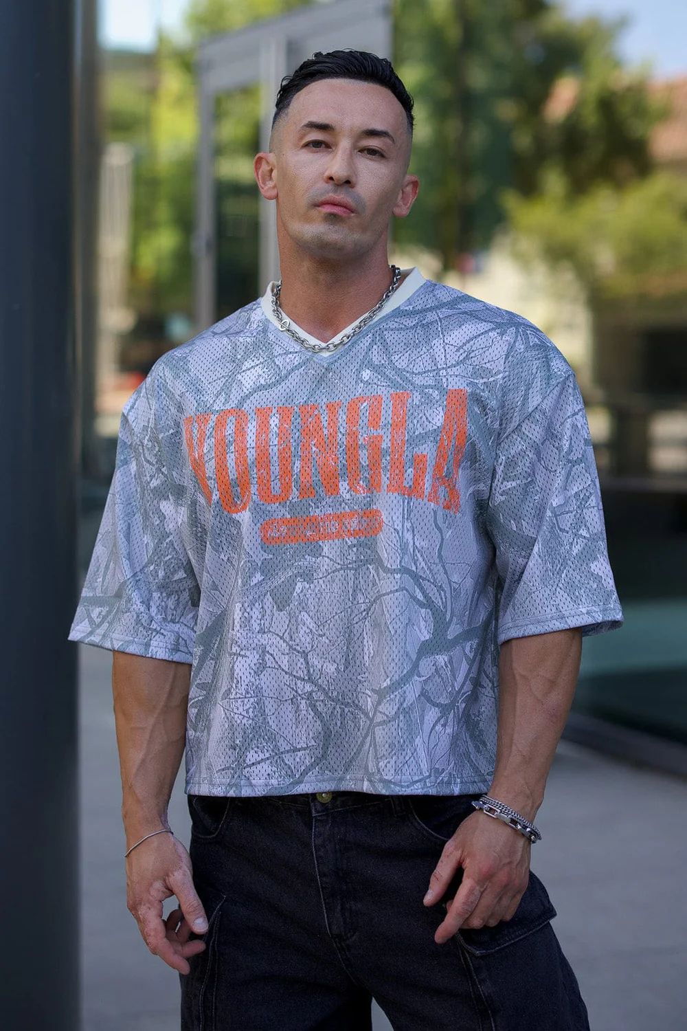 YOUNGLA American New Men's Oversized T-Shirt 여름 스포츠 피트니스 속건성 통기성 메쉬 반팔 티셔츠스토어 가기