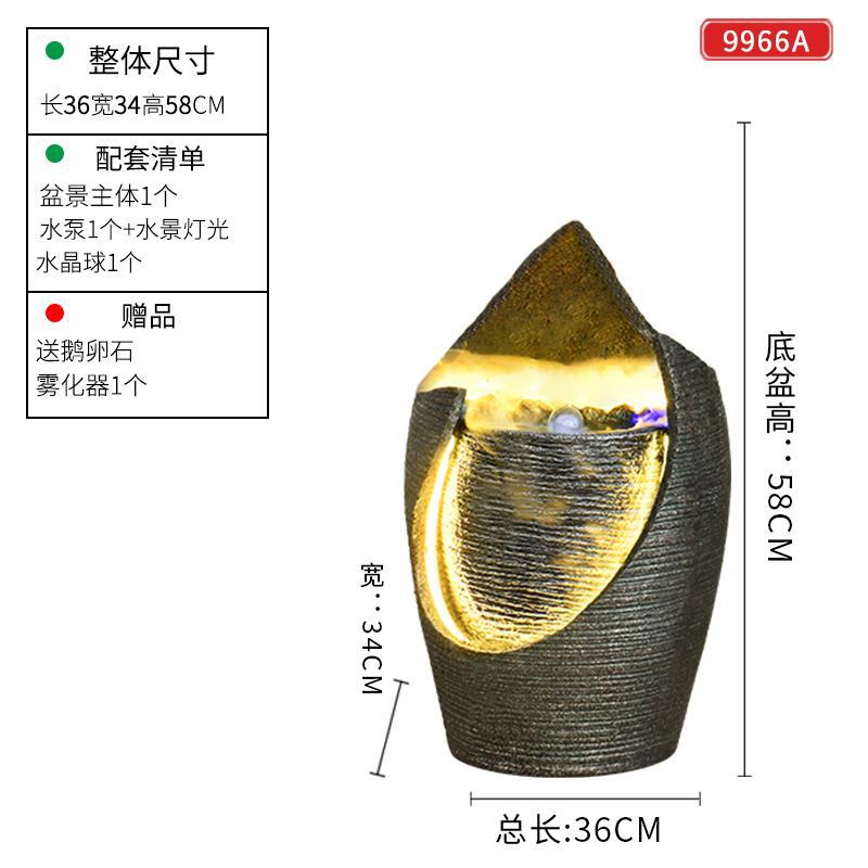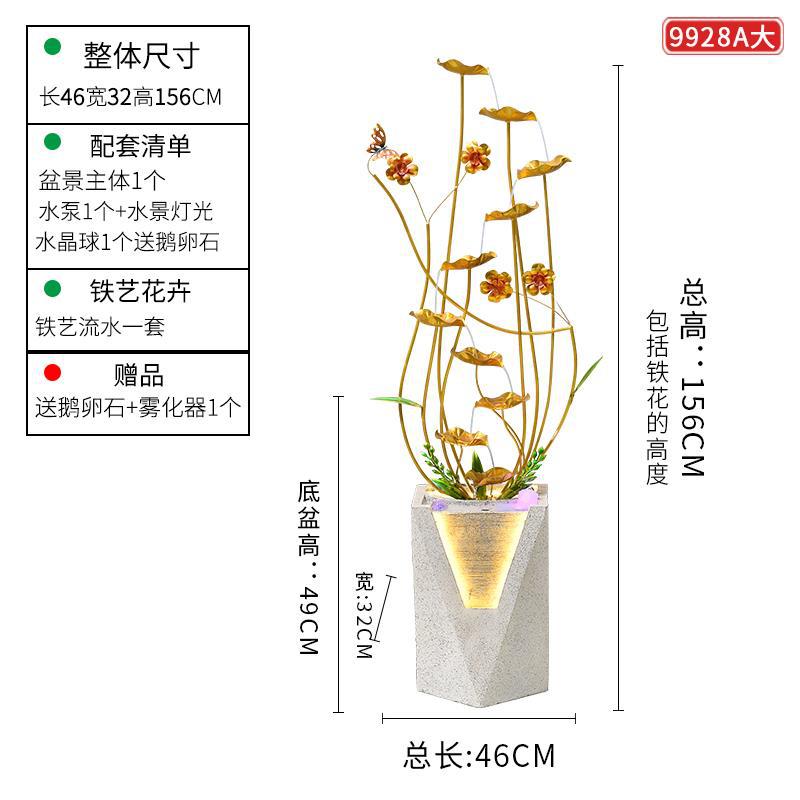 바닥에서 천장까지의 가벼운 고급 흐르는 물 장식품, 순환하는 물, 거실, 사무실, TV 캐비닛 옆에 가습기, 돈 버는 분재 장식스토어 가기