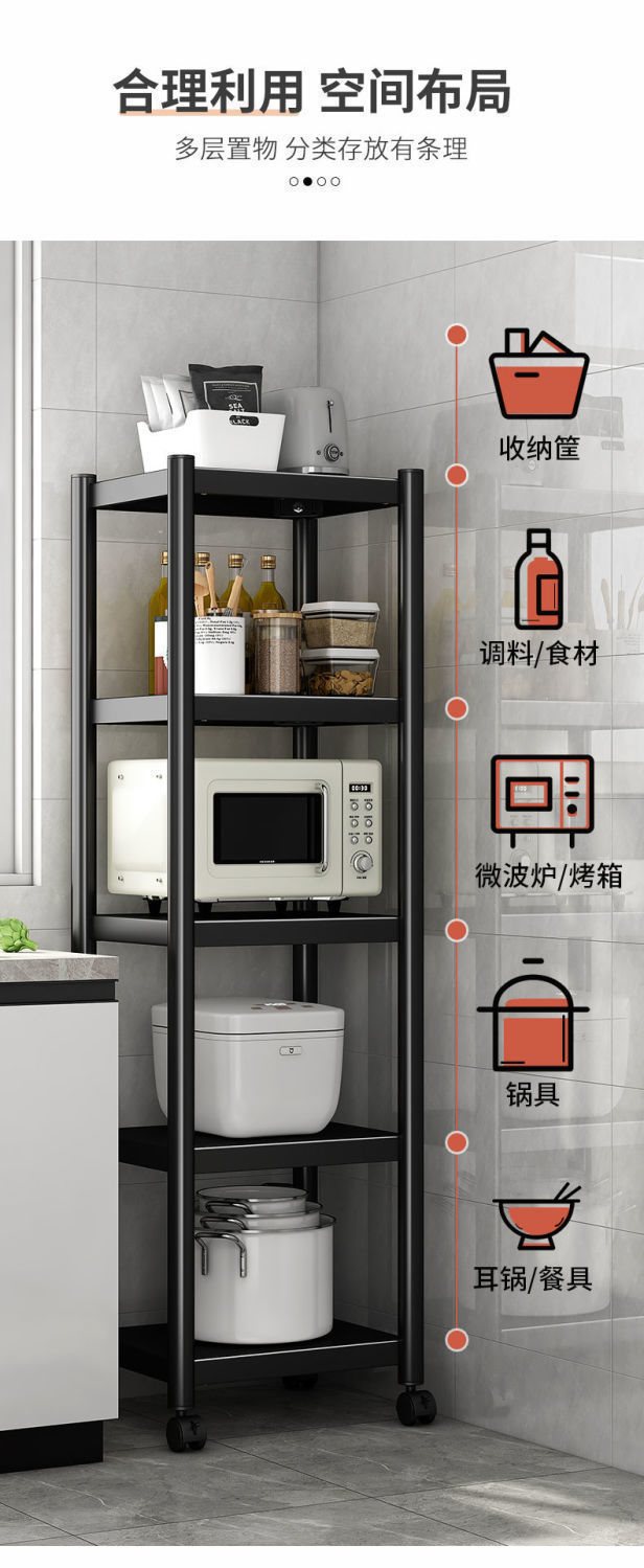 공장 공급 주방 선반 바닥 형 다층 전자 레인지 선반 코너 갭 랙 스토리지 랙