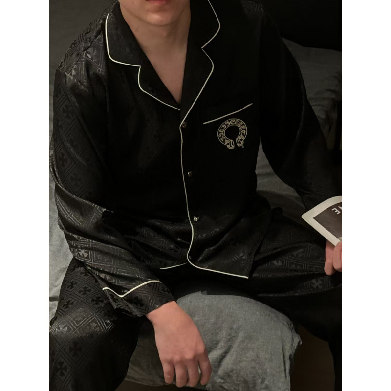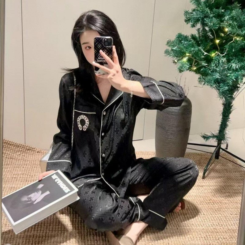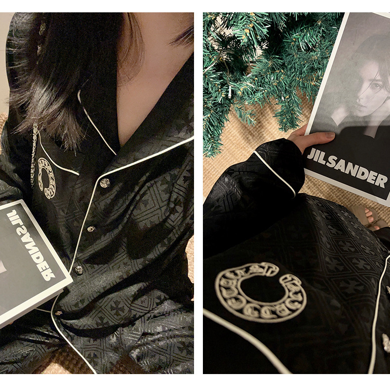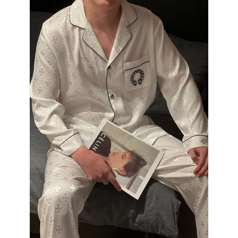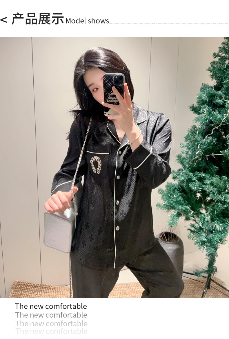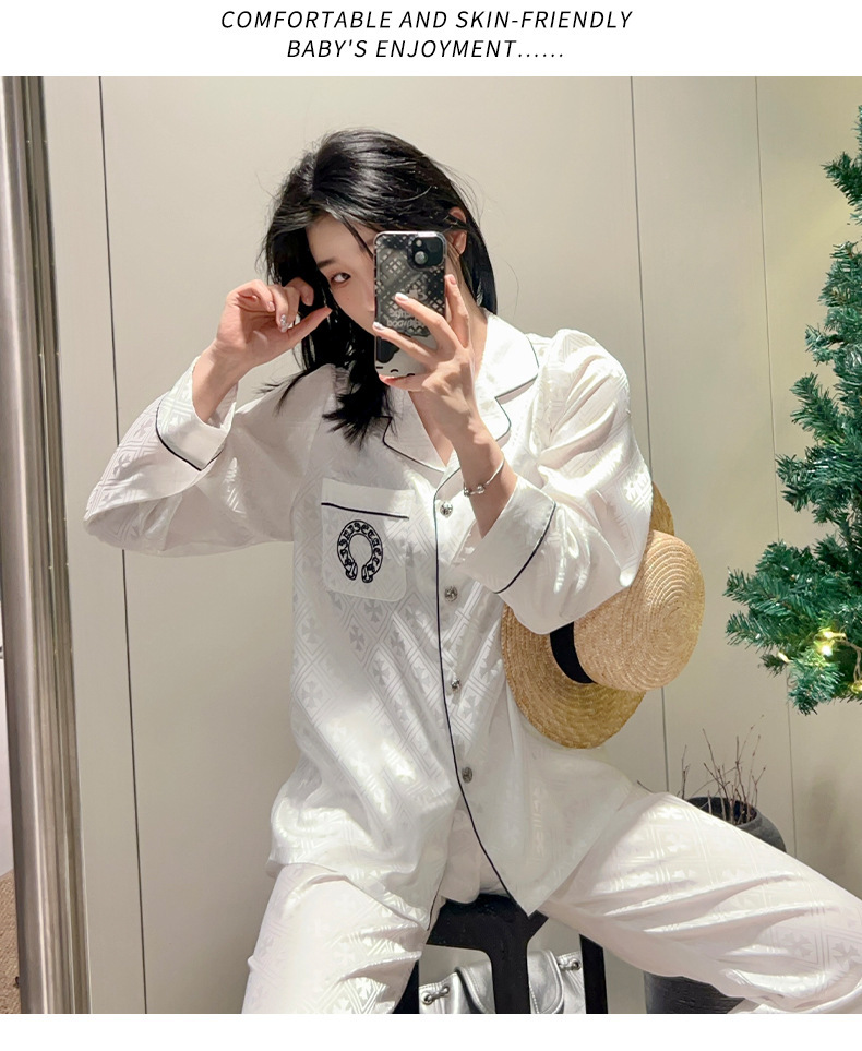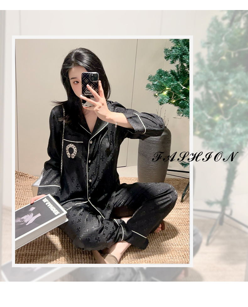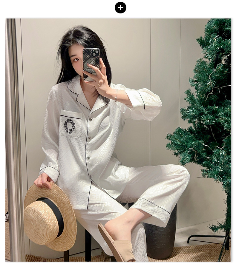 [커플] 패셔너블한 봄 여름 신작 잠옷, 고급 홈웨어, 남성용 얼음과 눈 실크 슈트, 여성용 긴팔 바지스토어 가기