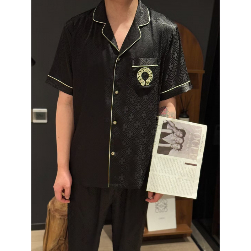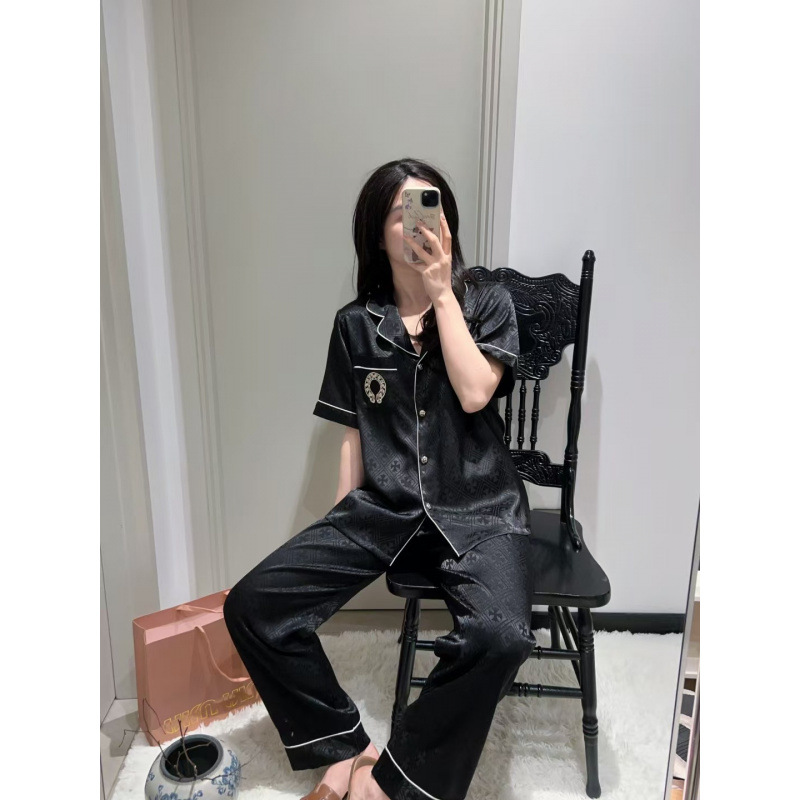 [커플] 패셔너블한 봄 여름 신작 잠옷, 고급 홈웨어, 남성용 얼음과 눈 실크 슈트, 여성용 긴팔 바지