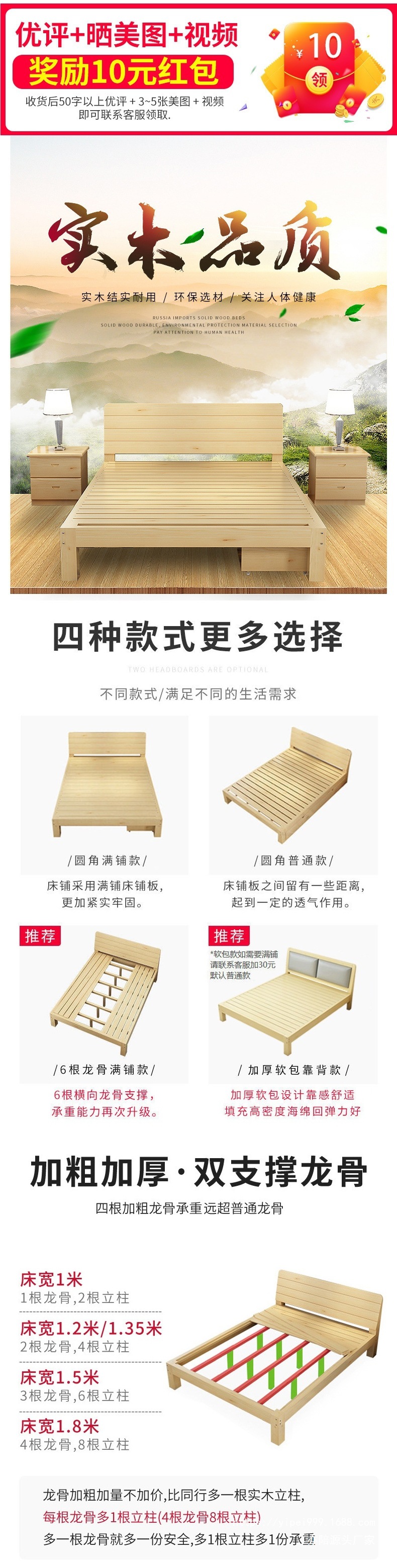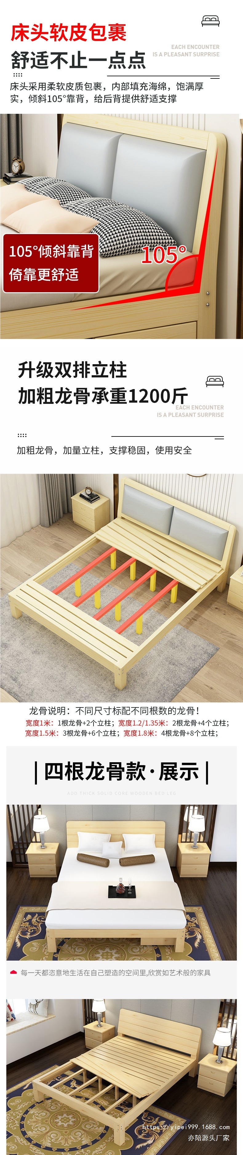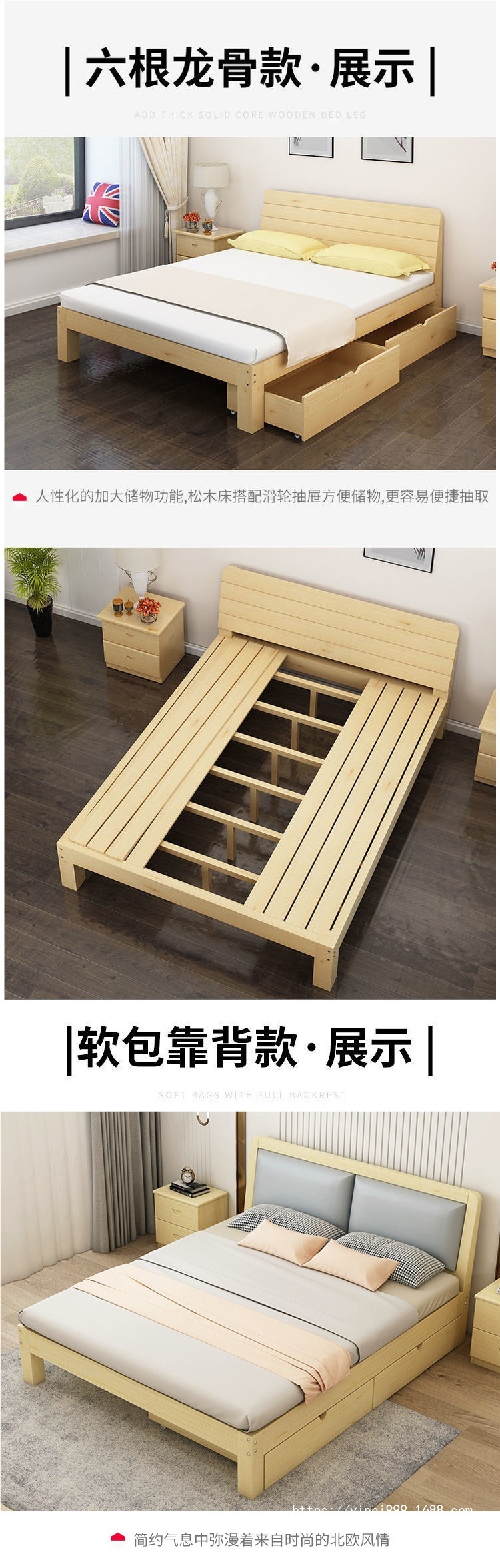 원목 침대 1.5m 소나무 더블 침대 1.8m 경제적인 모던 심플 임대실 심플 싱글 침대 프레임 1개스토어 가기