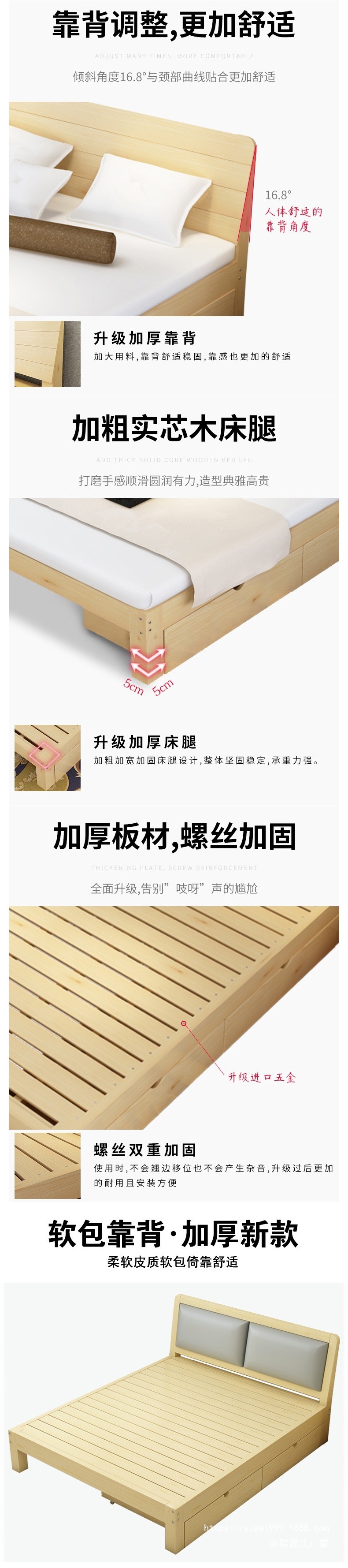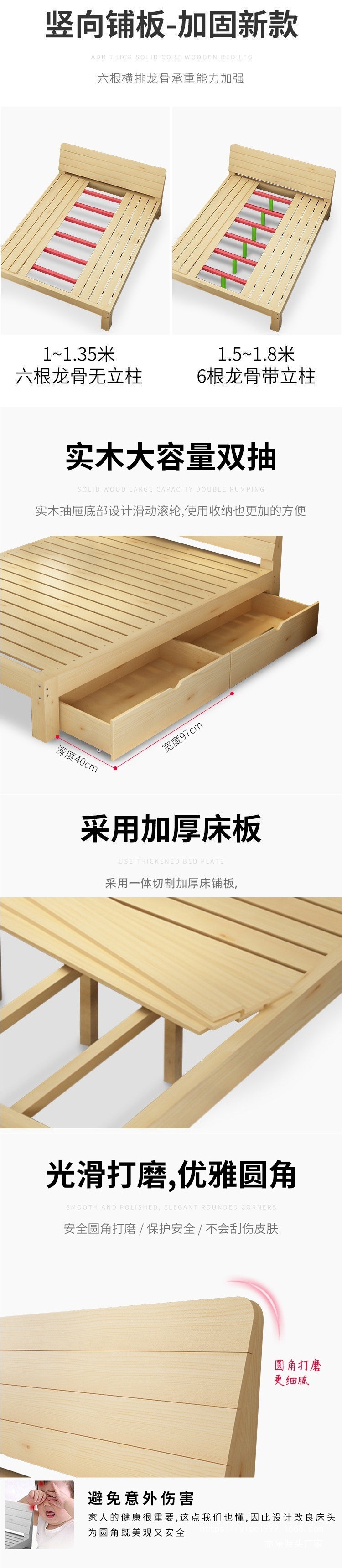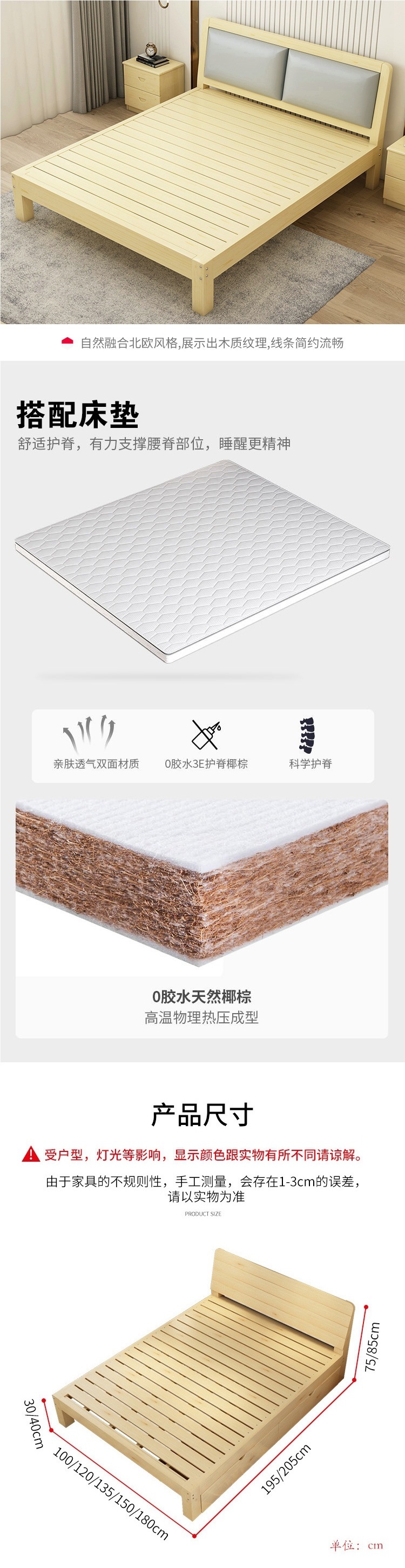 원목 침대 1.5m 소나무 더블 침대 1.8m 경제적인 모던 심플 임대실 심플 싱글 침대 프레임 1개