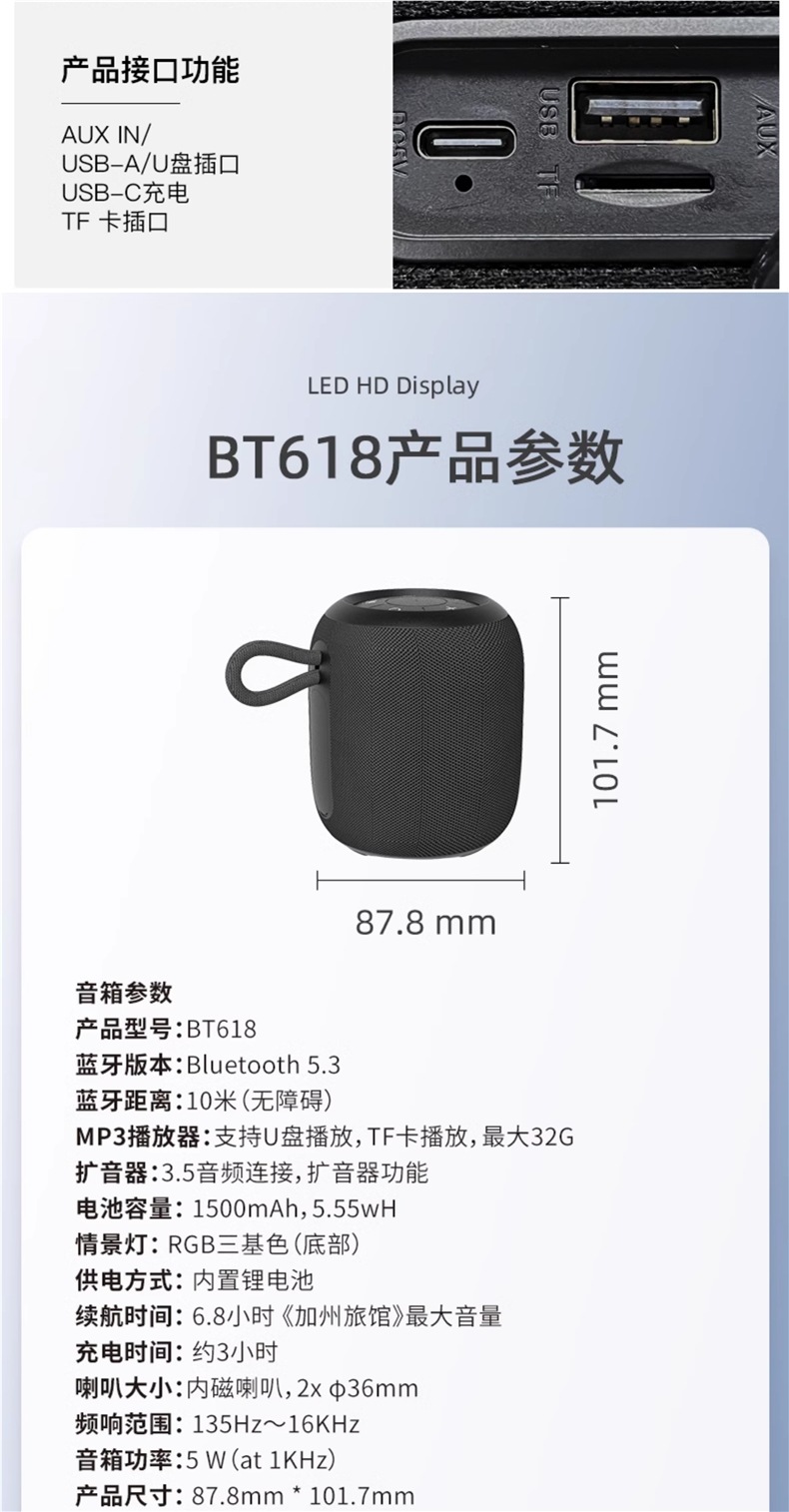 AEC 매니아 블루투스 스피커 야외 사이클링 휴대용 다채로운 조명 서브 우퍼 자동차 대용량 오디오