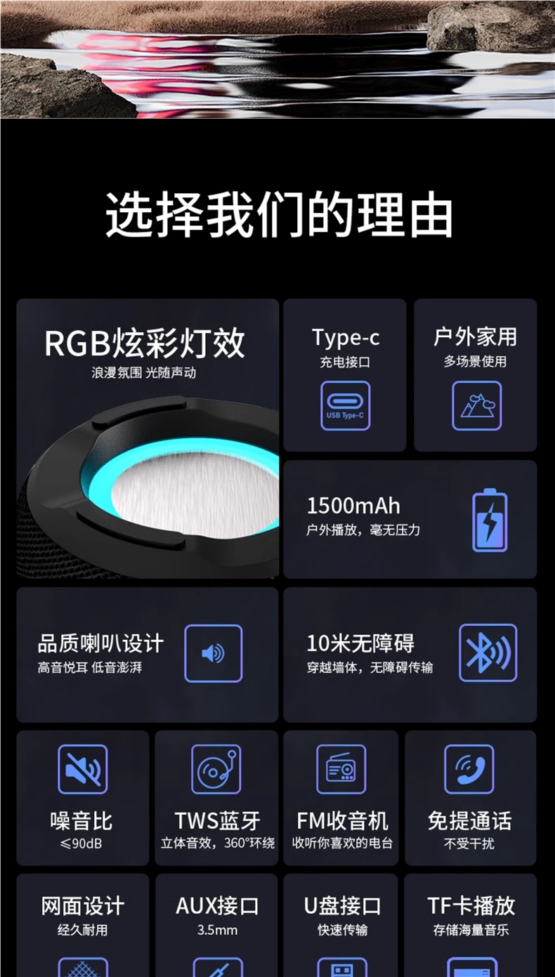 AEC 매니아 블루투스 스피커 야외 사이클링 휴대용 다채로운 조명 서브 우퍼 자동차 대용량 오디오스토어 가기