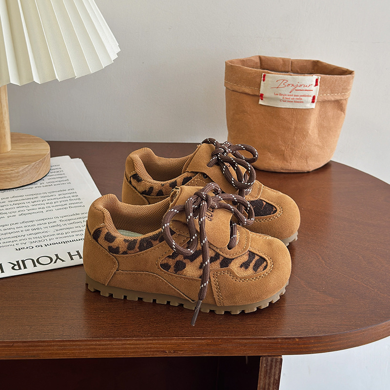 여자 운동화 2024 가을 새로운 어린이 표범 인쇄 패션 육군 훈련 소년 복고풍 다목적 부드러운 단독 캐주얼 신발