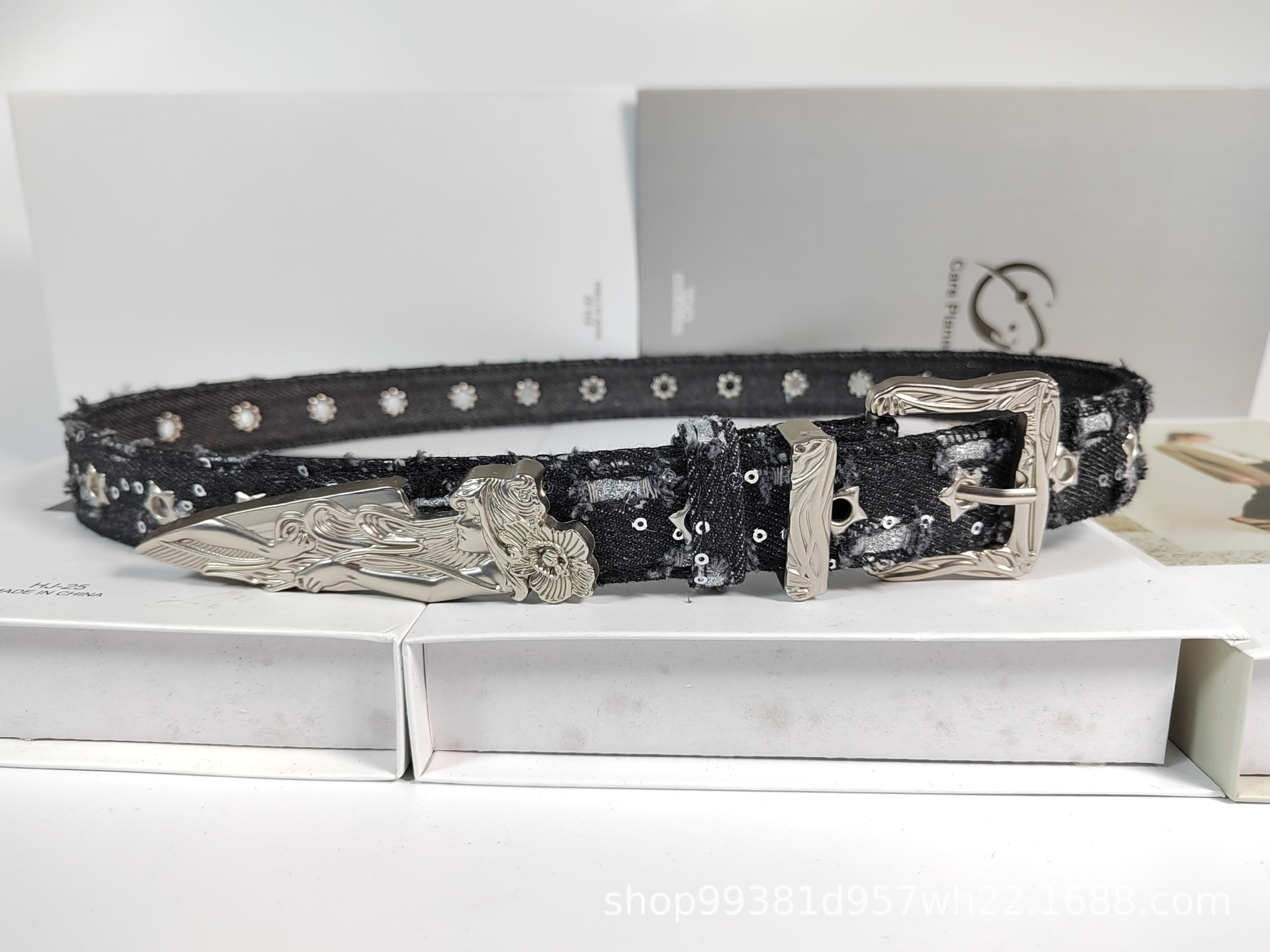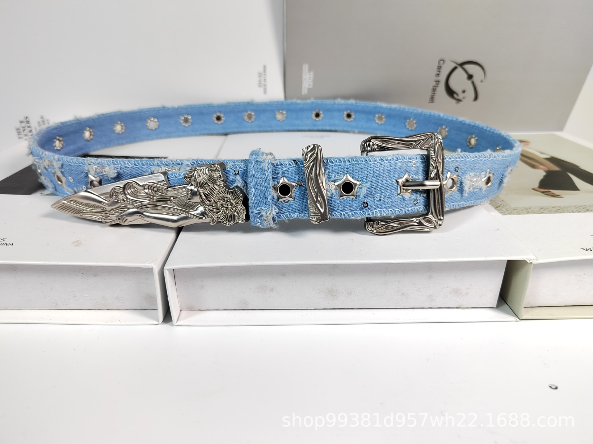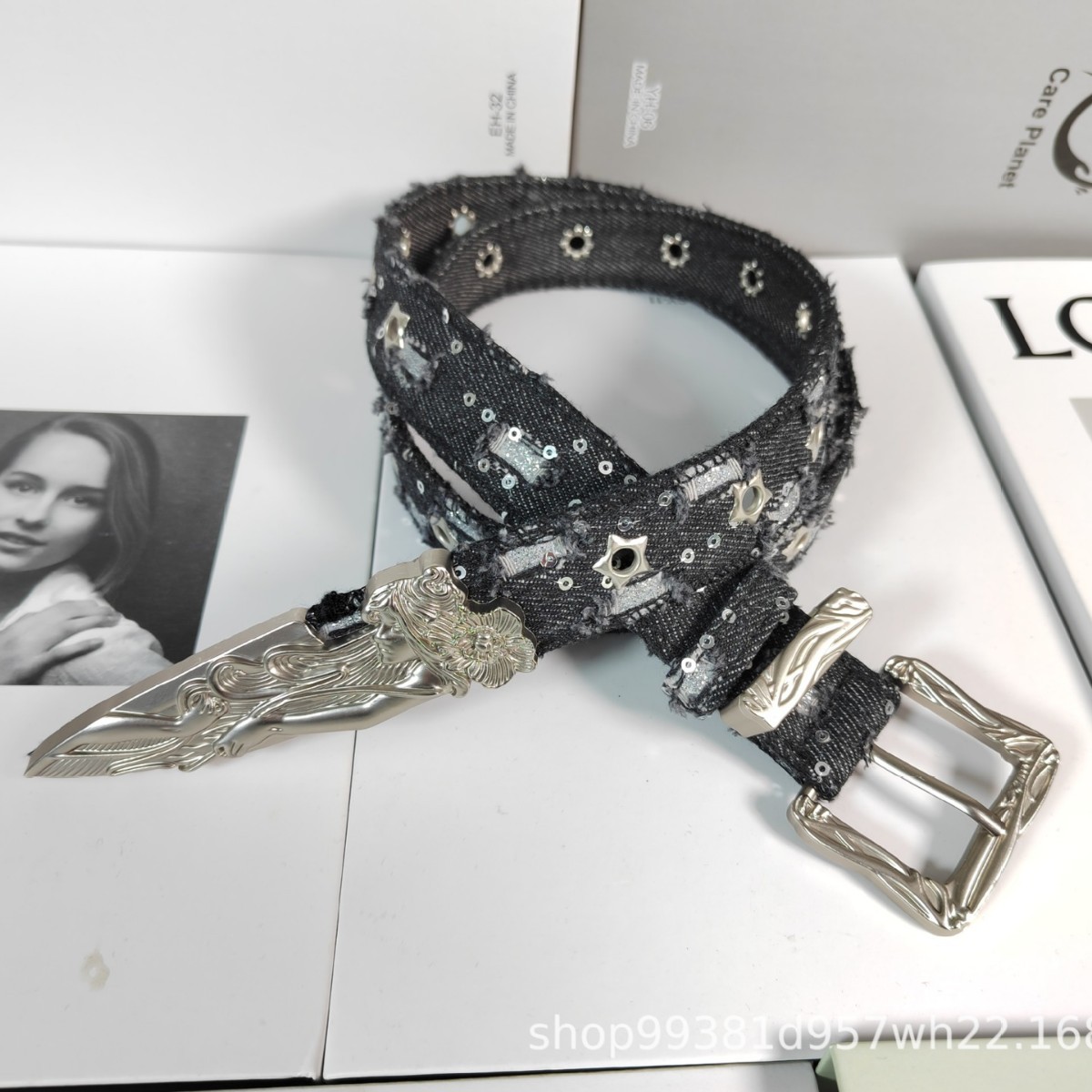 웨스턴 데님 복고풍 조각 단검 양각 인어 벨트 장식 패션 개성 유행 여성 벨트스토어 가기
