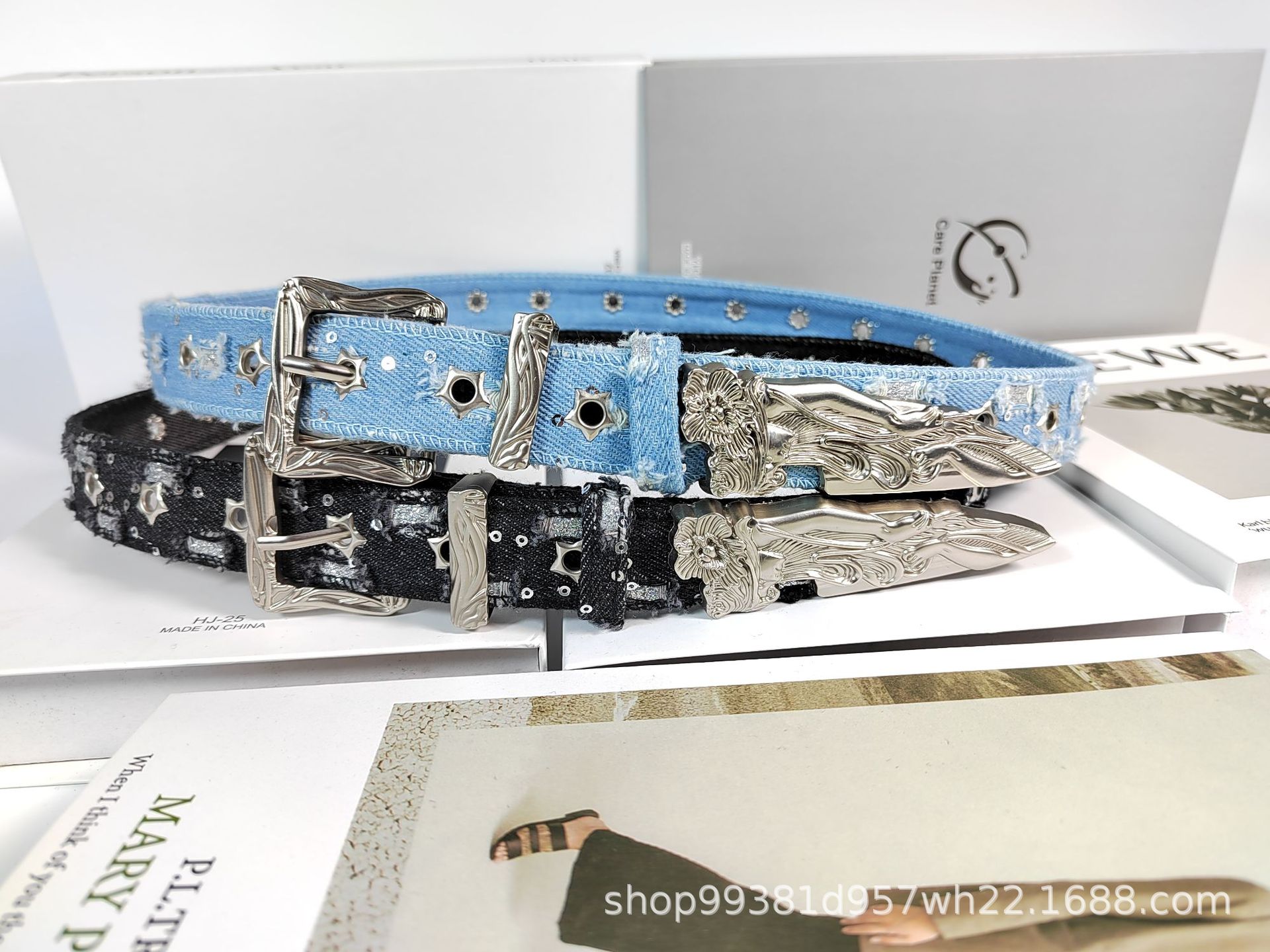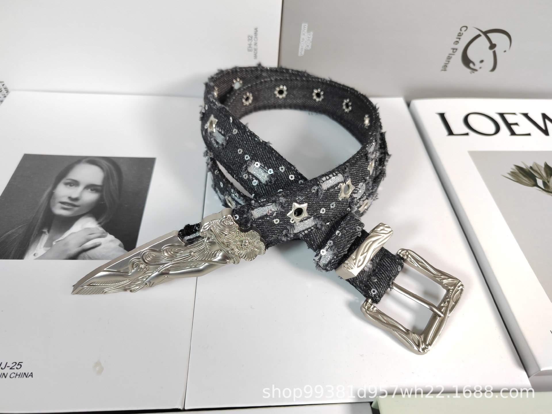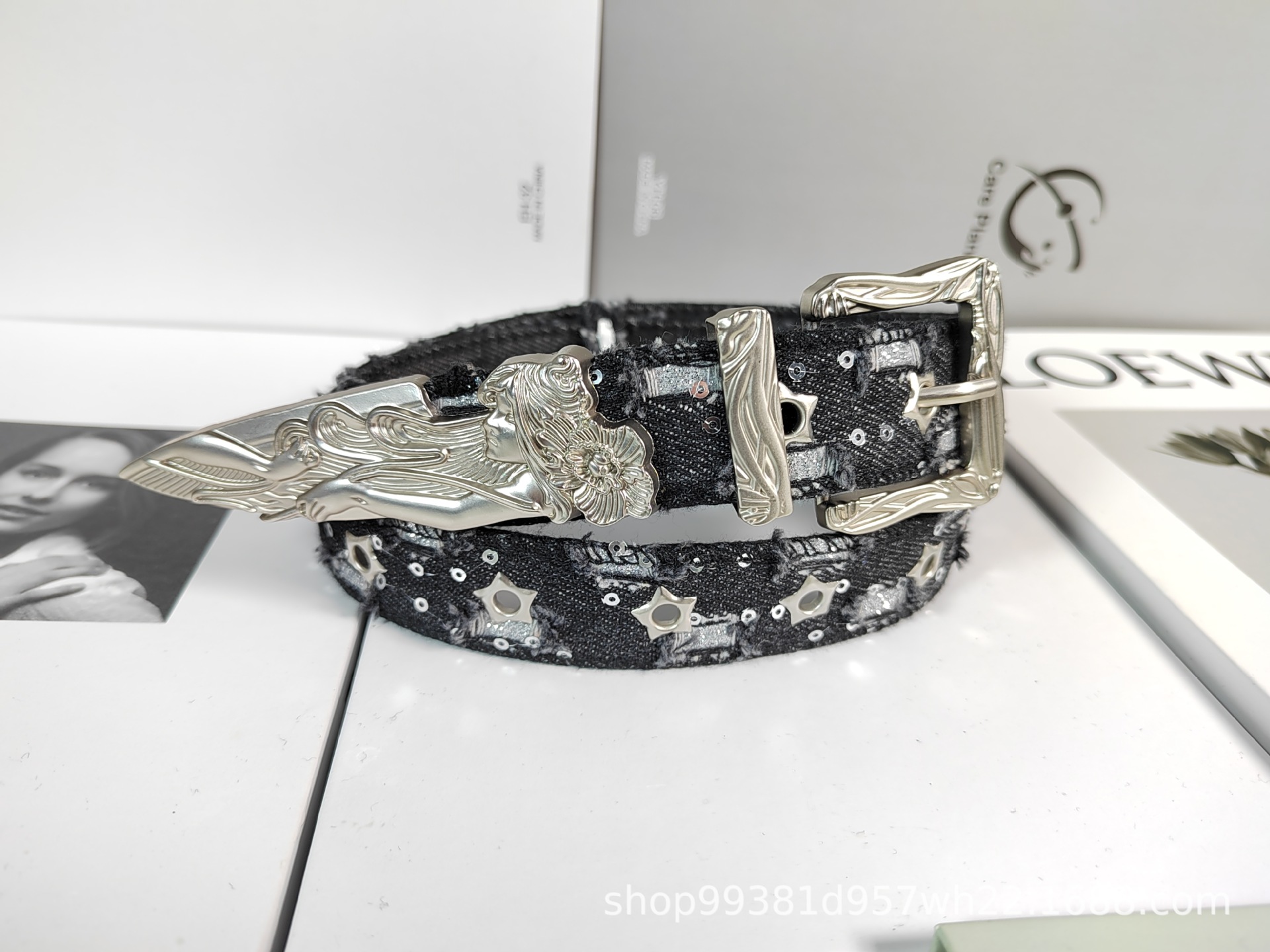 웨스턴 데님 복고풍 조각 단검 양각 인어 벨트 장식 패션 개성 유행 여성 벨트스토어 가기