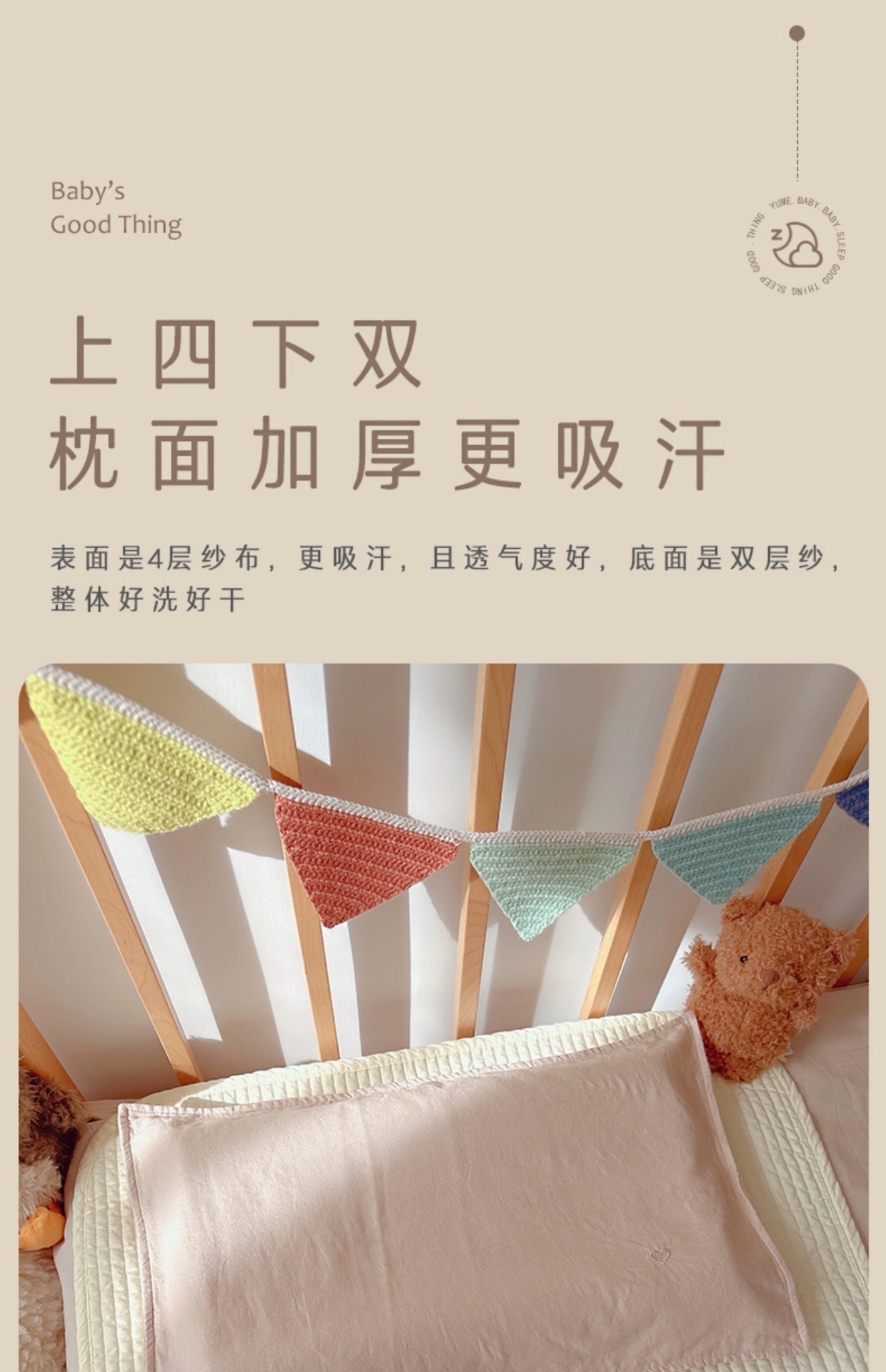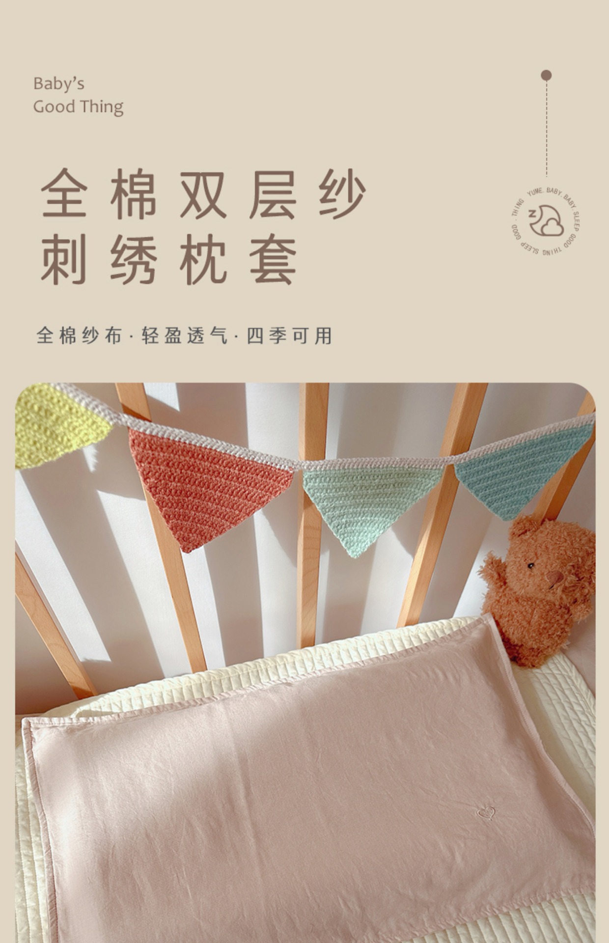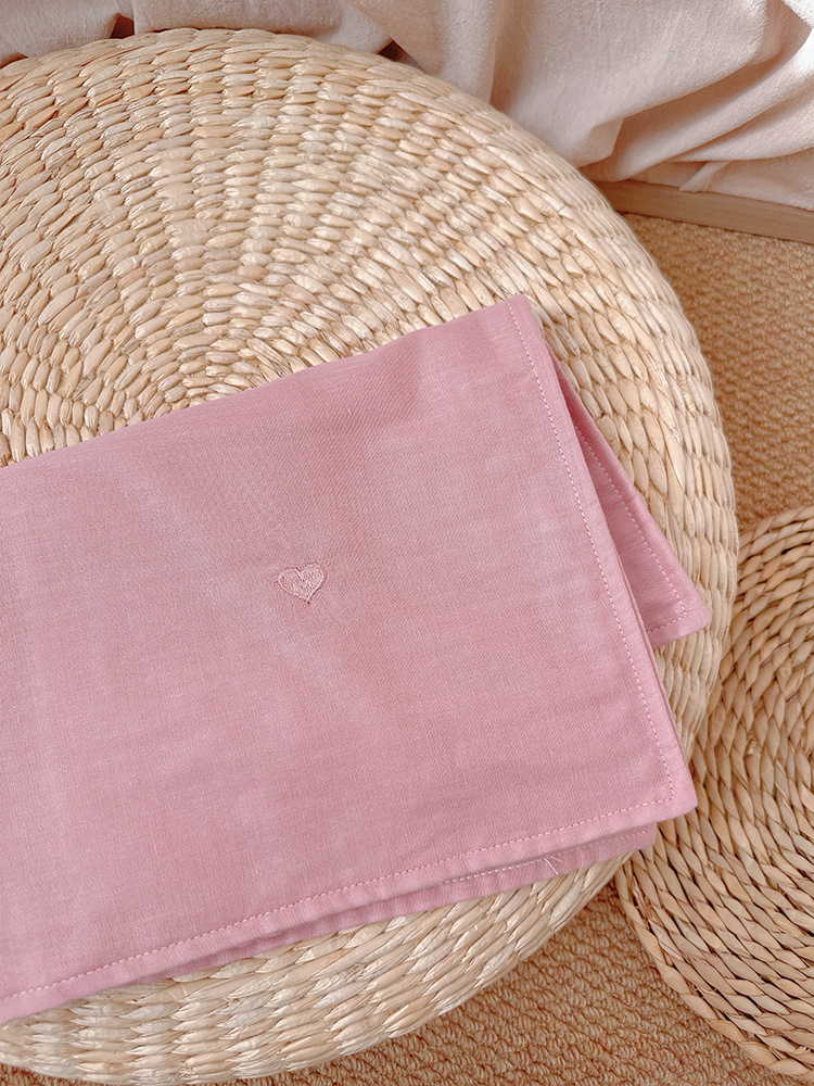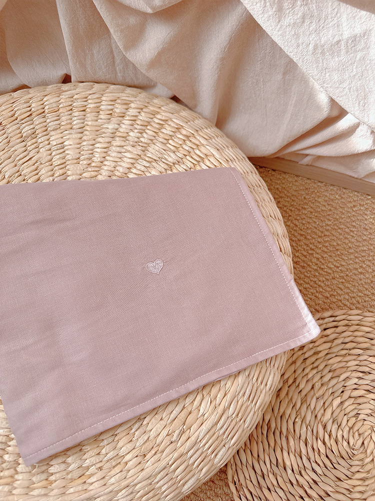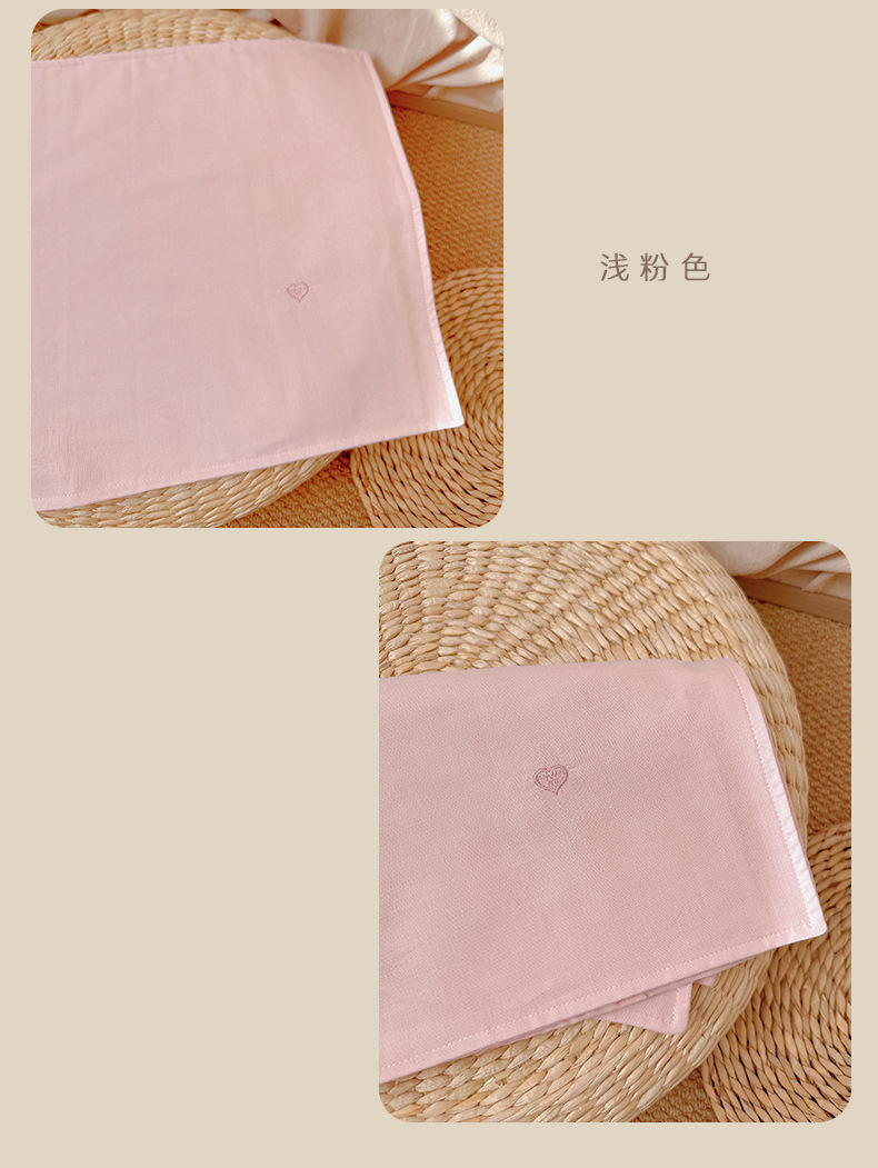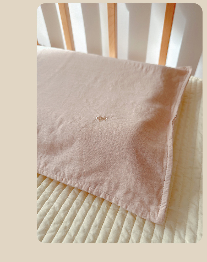Aibaby 클래스 A 면 거즈 작은 자수 단색 어린이 베개 커버 부드럽고 두꺼운 4 층 아기 베개 커버