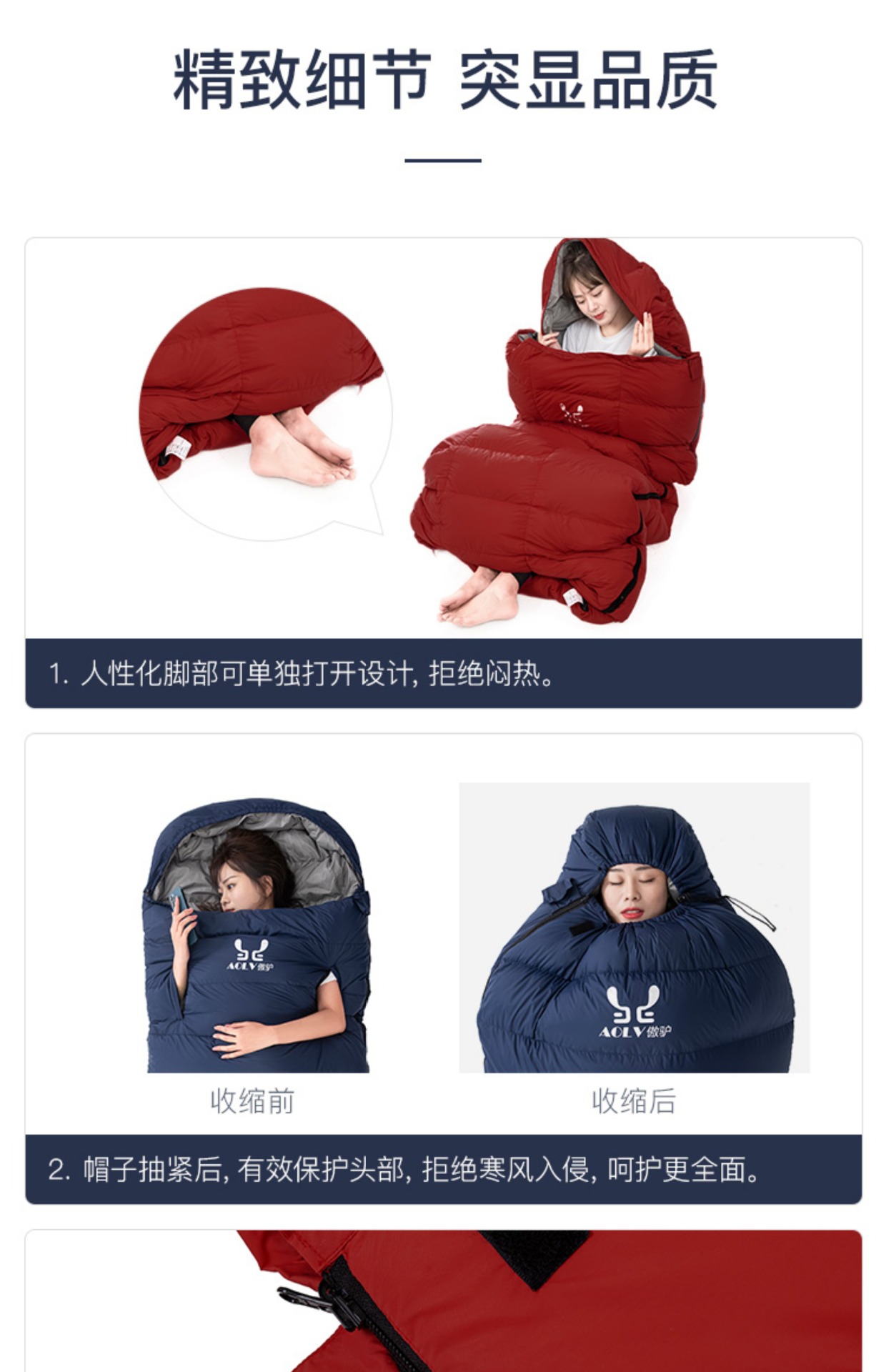 • 네이비 블루 [확장 버전] 1500g 충전재, 압축 가방 + 공기 주입식 베개 포함
