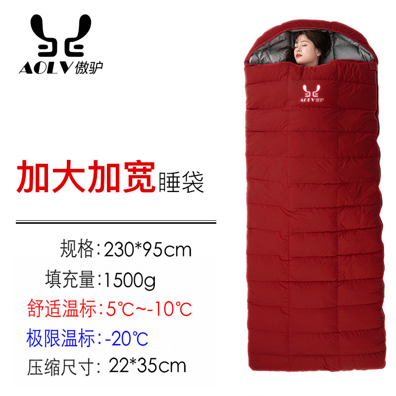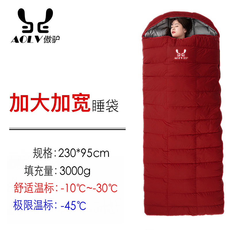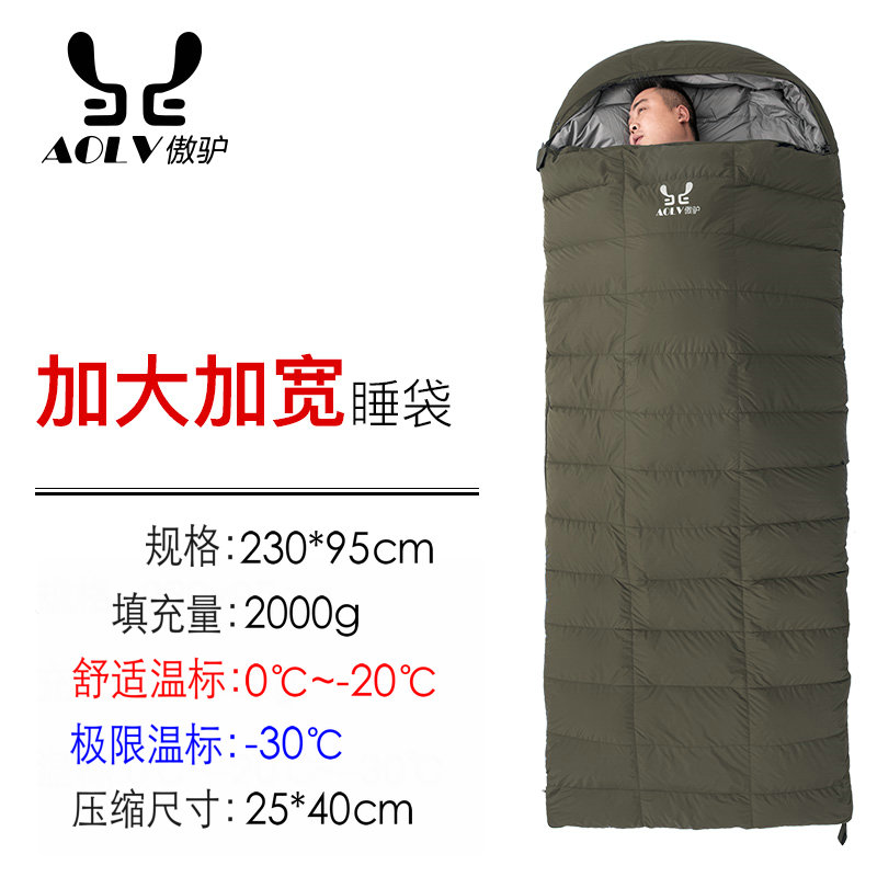 성인용 와이드 다운 침낭, 야외 침낭, 영하 30도 및 40도, 겨울철 두꺼워진 방한 야외 캠핑 성인스토어 가기